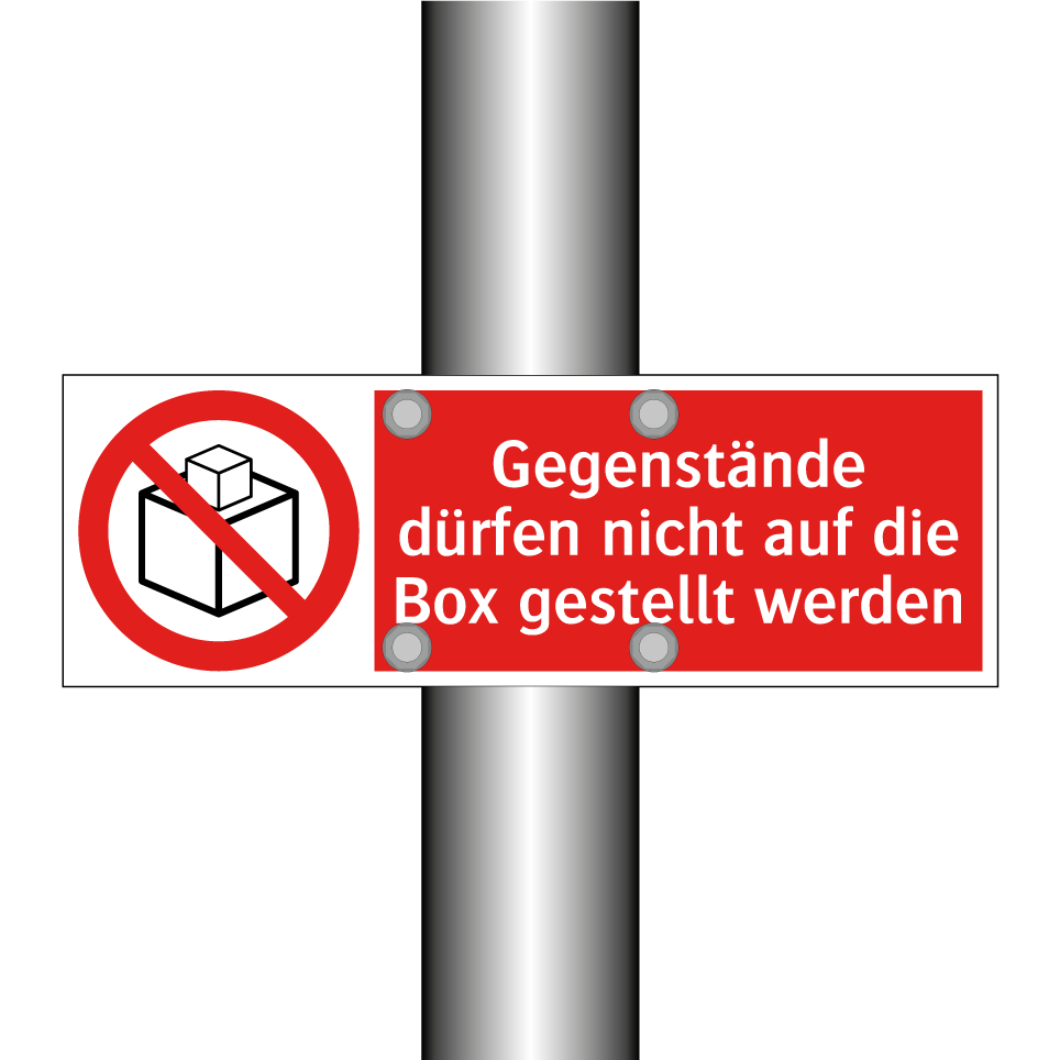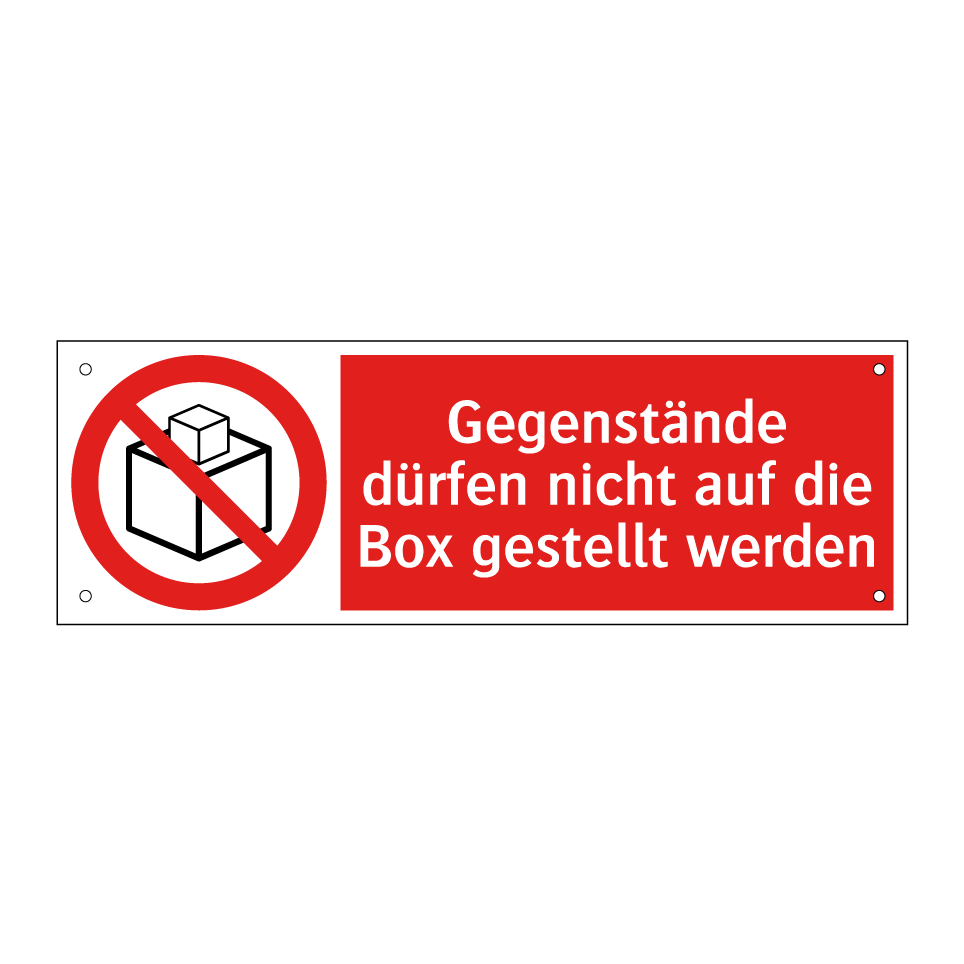 Verbotsschild mit dem Text Gegenstände dürfen nicht auf die Box gestellt werden