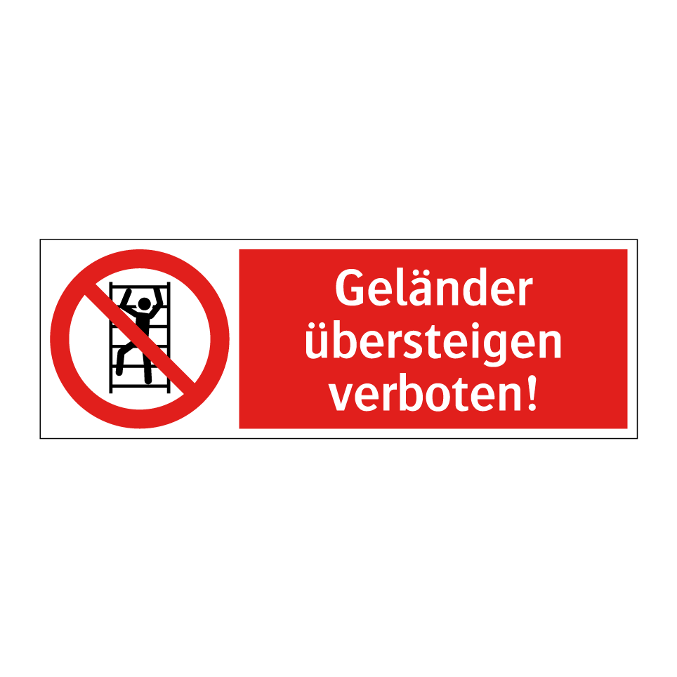 Verbotsschild mit dem Text Geländer übersteigen verboten!