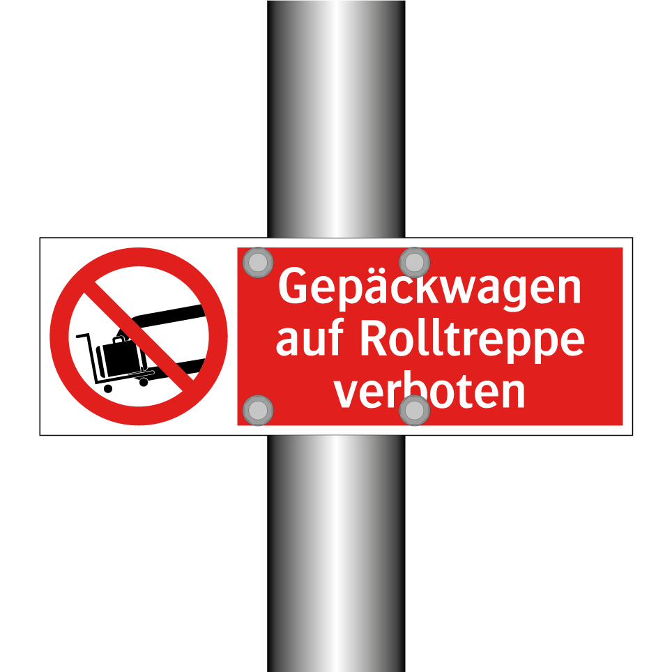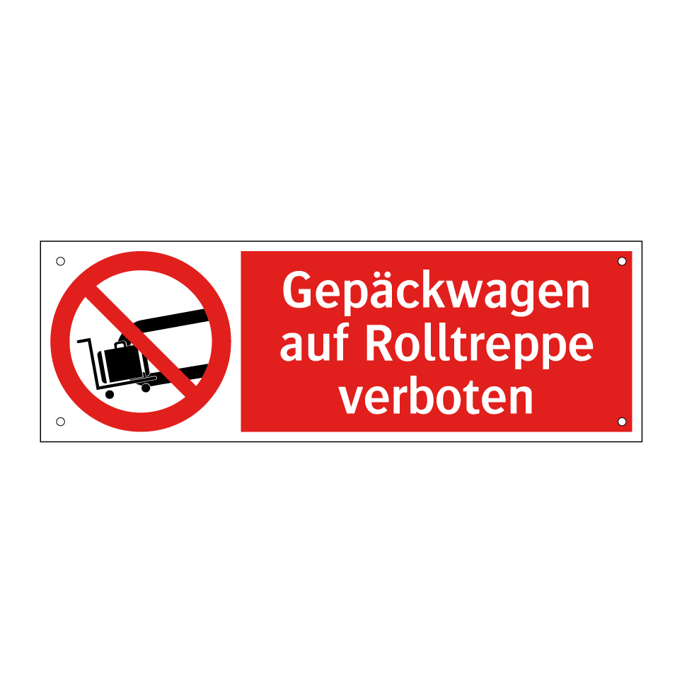 Verbotsschild mit dem Text Gepäckwagen auf Rolltreppe verboten