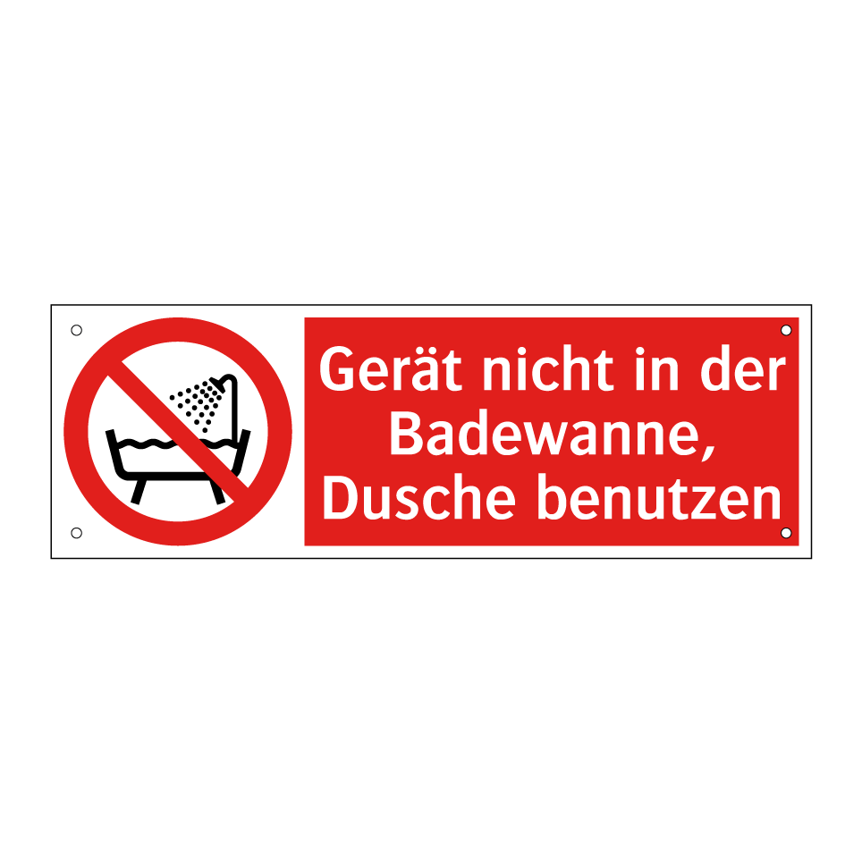 Verbotsschild mit dem Text Gerät nicht in der Badewanne, Dusche benutzen