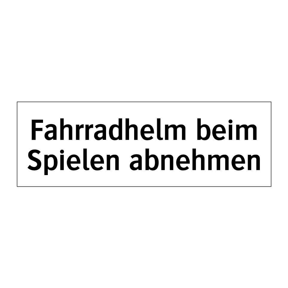 Verbotsschild mit dem Text Fahrradhelm beim Spielen abnehmen