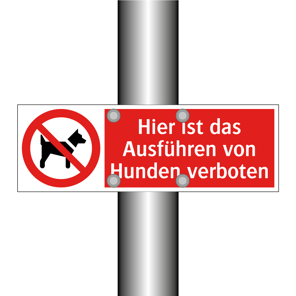 Verbotsschild mit dem Text Hier ist das Ausführen von Hunden verboten