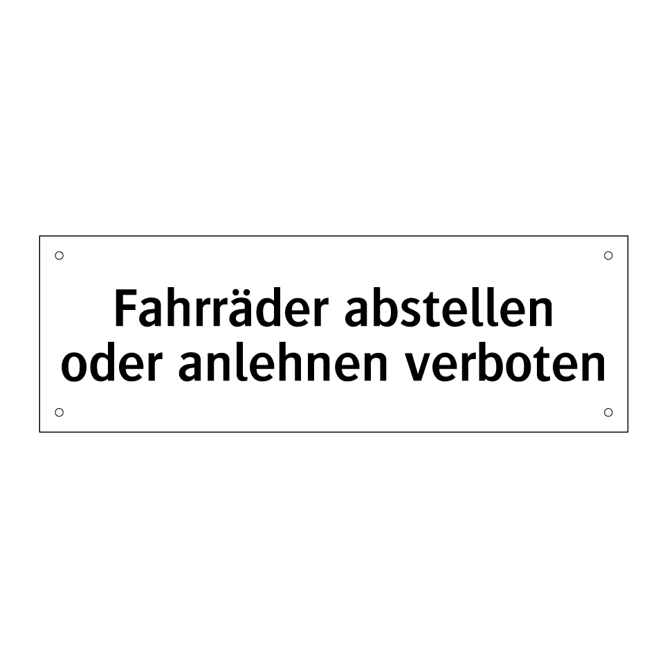 Verbotsschild mit dem Text Fahrräder abstellen oder anlehnen verboten