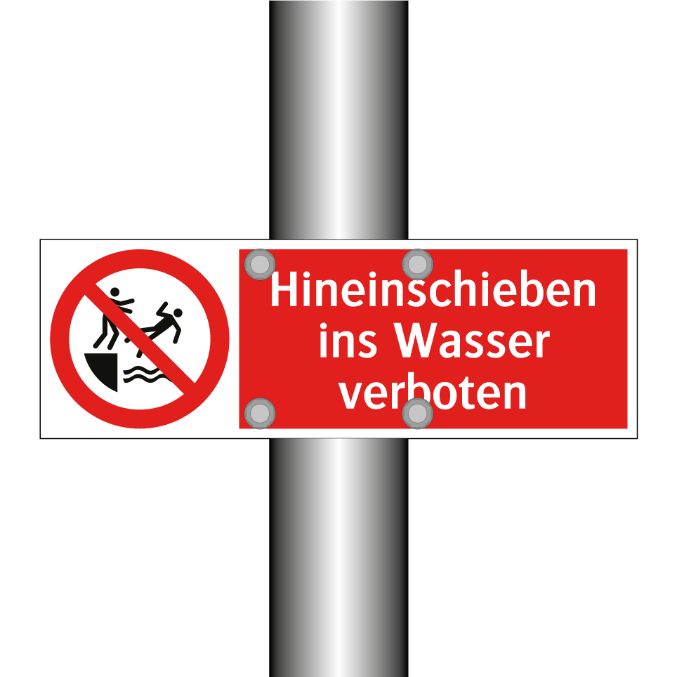 Verbotsschild mit dem Text Hineinschieben ins Wasser verboten