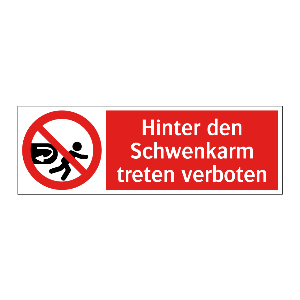 Verbotsschild mit dem Text Hinter den Schwenkarm treten verboten