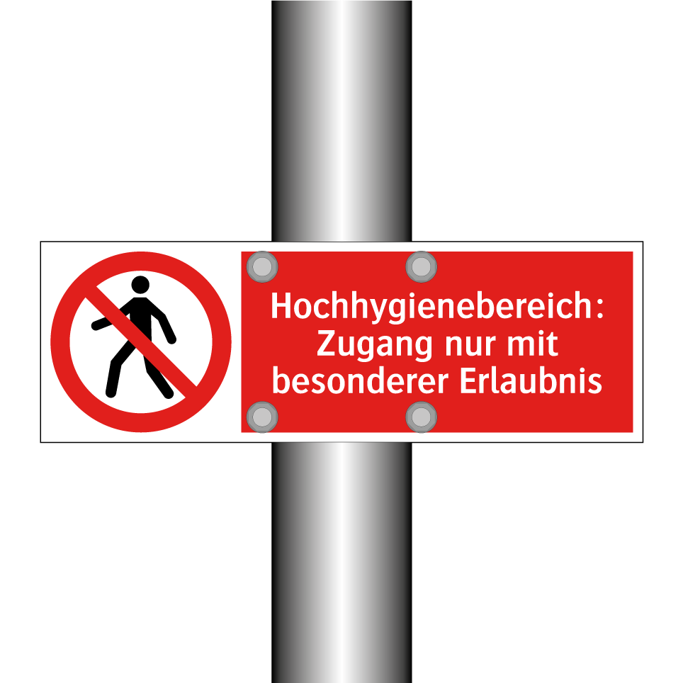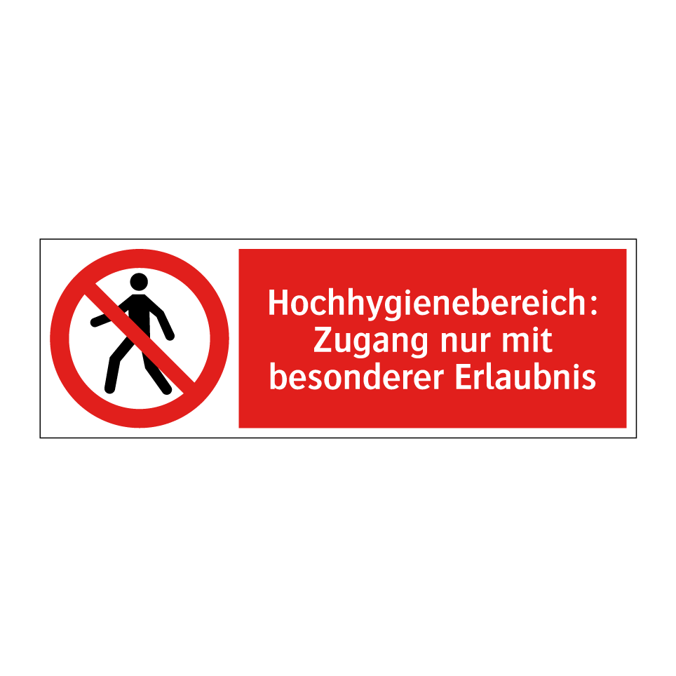 Verbotsschild mit dem Text Hochhygienebereich: Zugang nur mit besonderer Erlaubnis