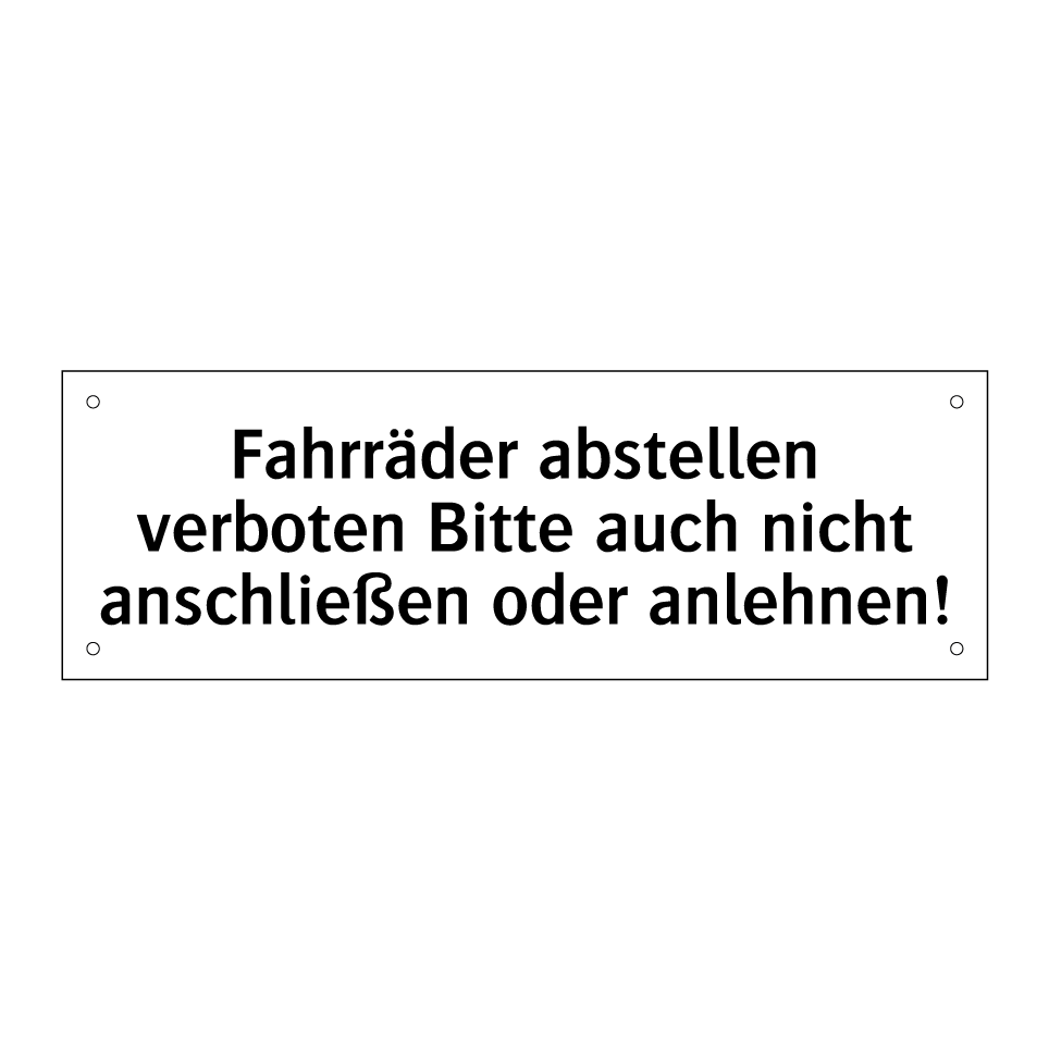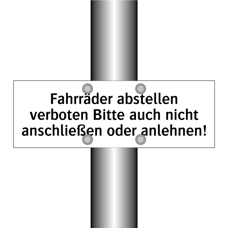 Verbotsschild mit dem Text Fahrräder abstellen verboten Bitte auch nicht anschließen oder anlehnen!