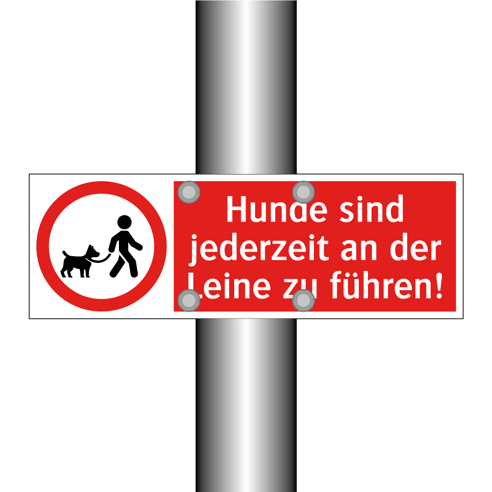Verbotsschild mit dem Text Hunde sind jederzeit an der Leine zu führen!