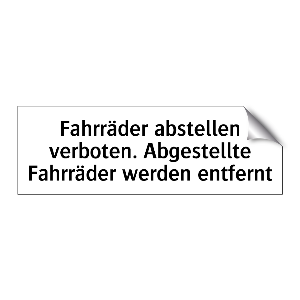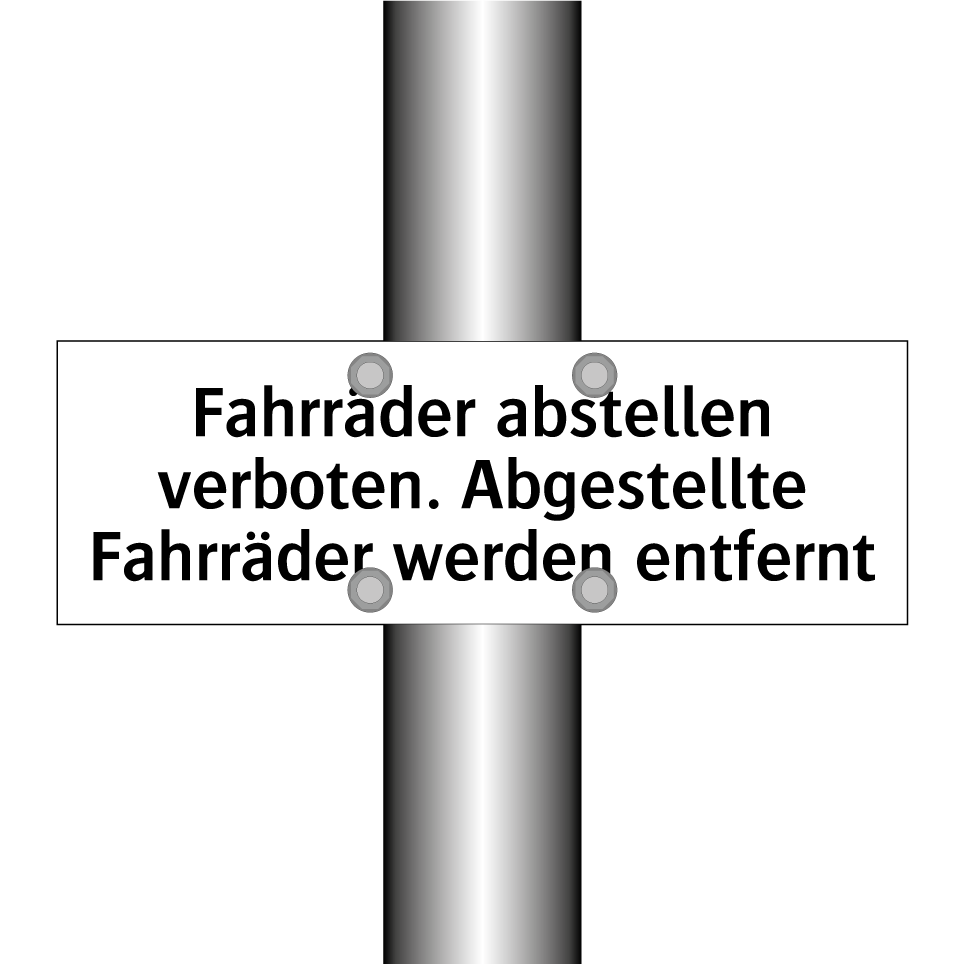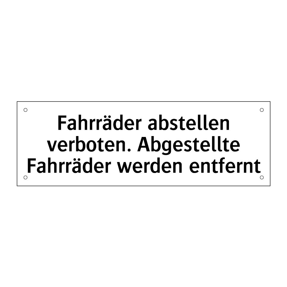Verbotsschild mit dem Text Fahrräder abstellen verboten. Abgestellte Fahrräder werden entfernt