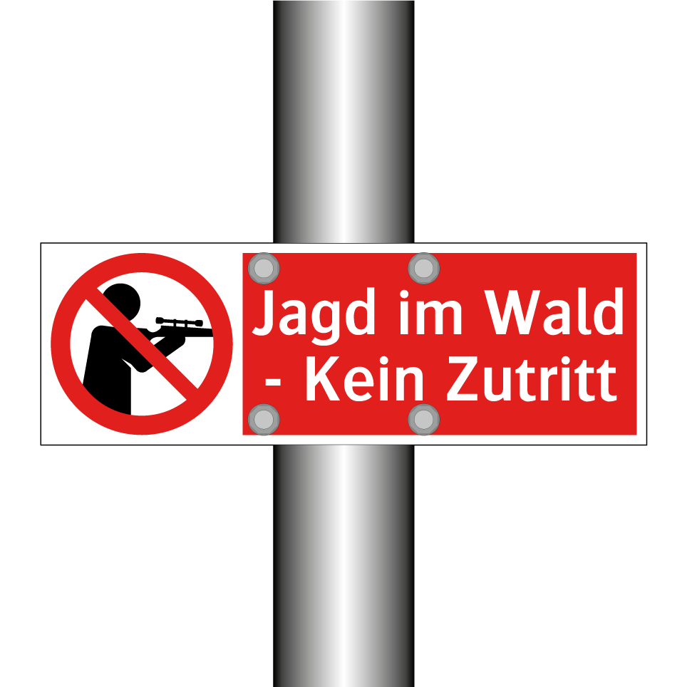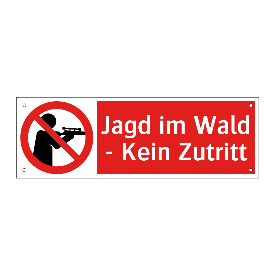 Verbotsschild mit dem Text Jagd im Wald - Kein Zutritt