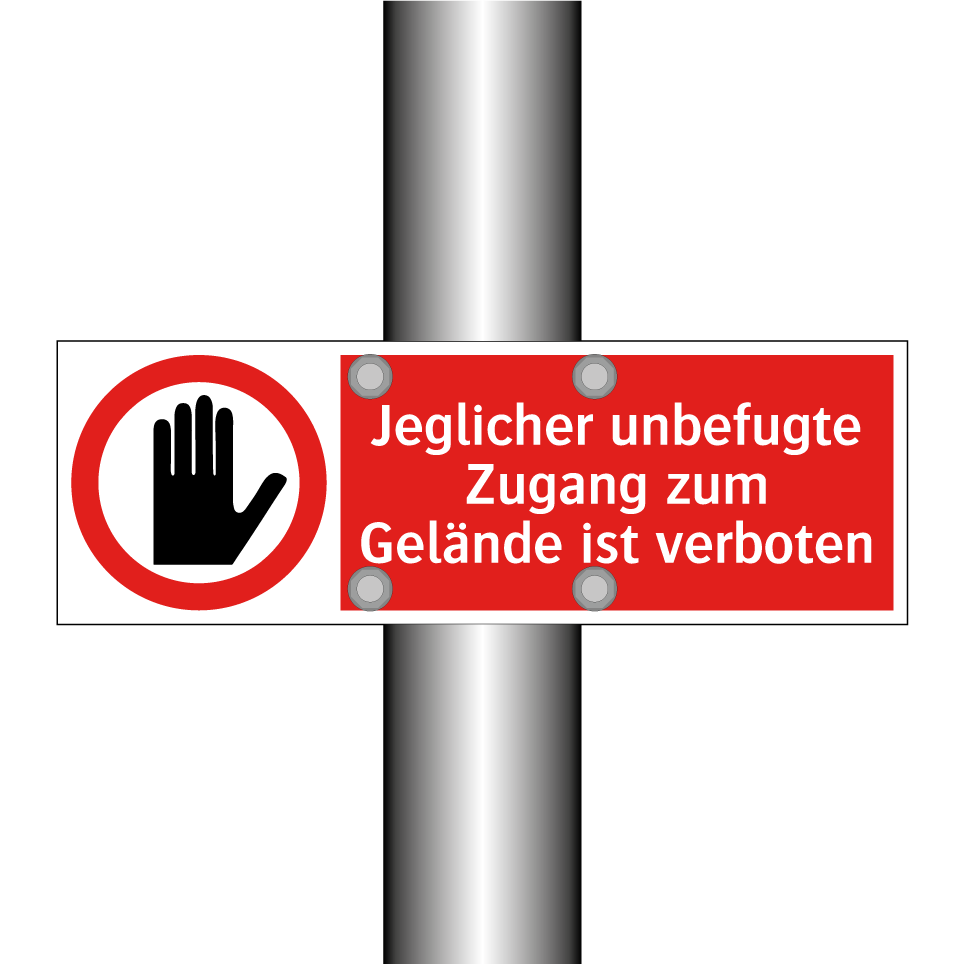 Verbotsschild mit dem Text Jeglicher unbefugte Zugang zum Gelände ist verboten