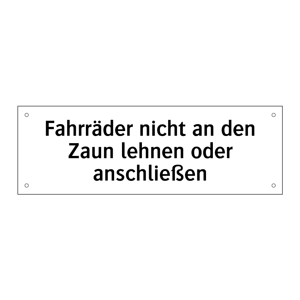 Verbotsschild mit dem Text Fahrräder nicht an den Zaun lehnen oder anschließen
