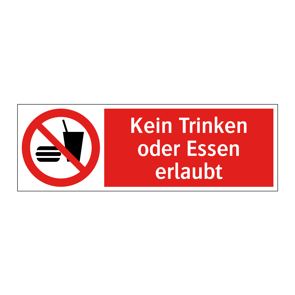Verbotsschild mit dem Text Kein Trinken oder Essen erlaubt