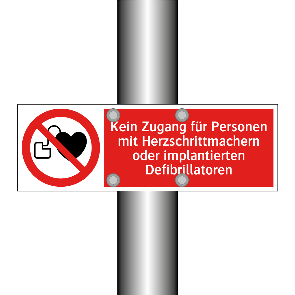 Verbotsschild mit dem Text Kein Zugang für Personen mit Herzschrittmachern oder implantierten Defibrillatoren