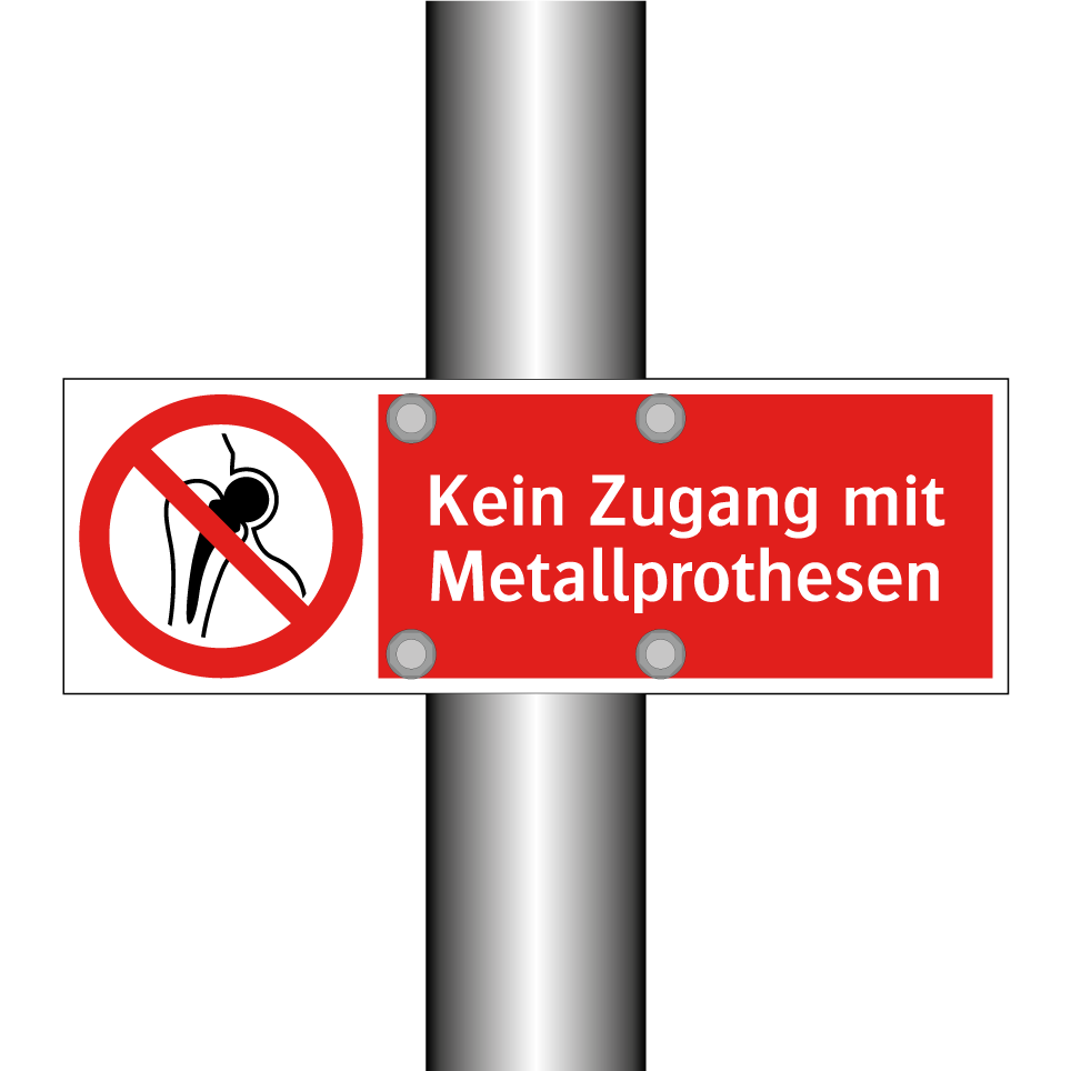 Verbotsschild mit dem Text Kein Zugang mit Metallprothesen