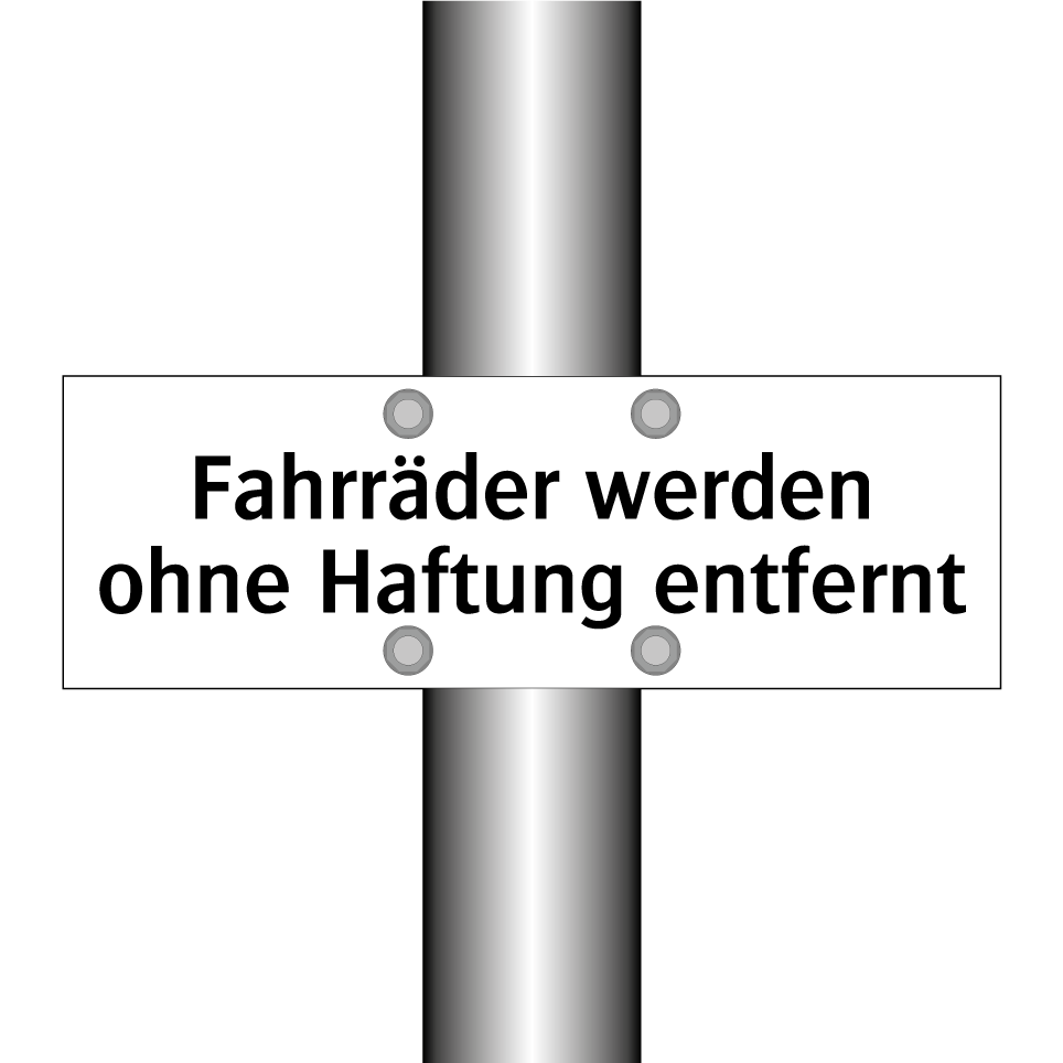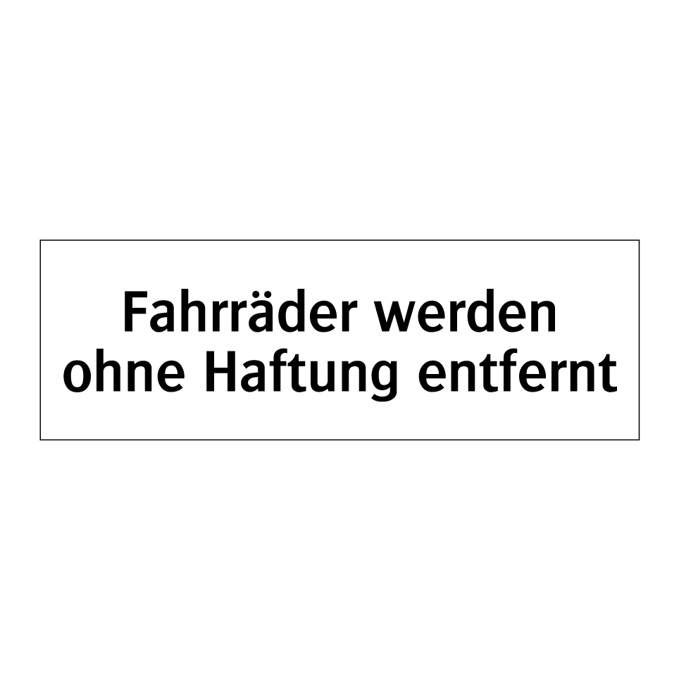 Verbotsschild mit dem Text Fahrräder werden ohne Haftung entfernt
