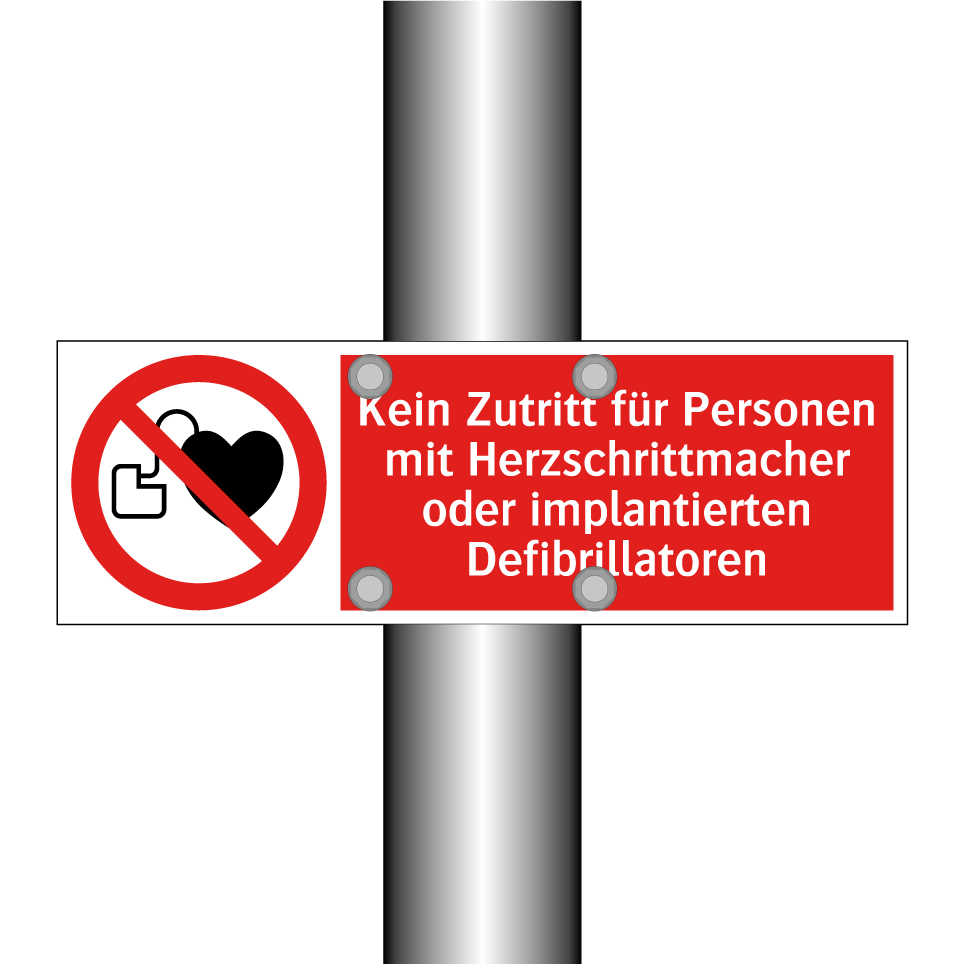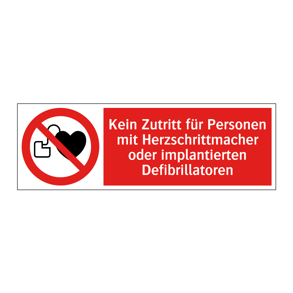 Verbotsschild mit dem Text Kein Zutritt für Personen mit Herzschrittmacher oder implantierten Defibrillatoren