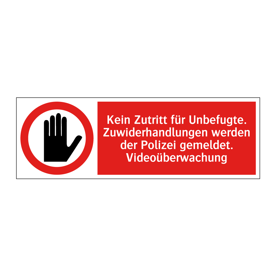 Verbotsschild mit dem Text Kein Zutritt für Unbefugte. Zuwiderhandlungen werden der Polizei gemeldet. Videoüberwachung