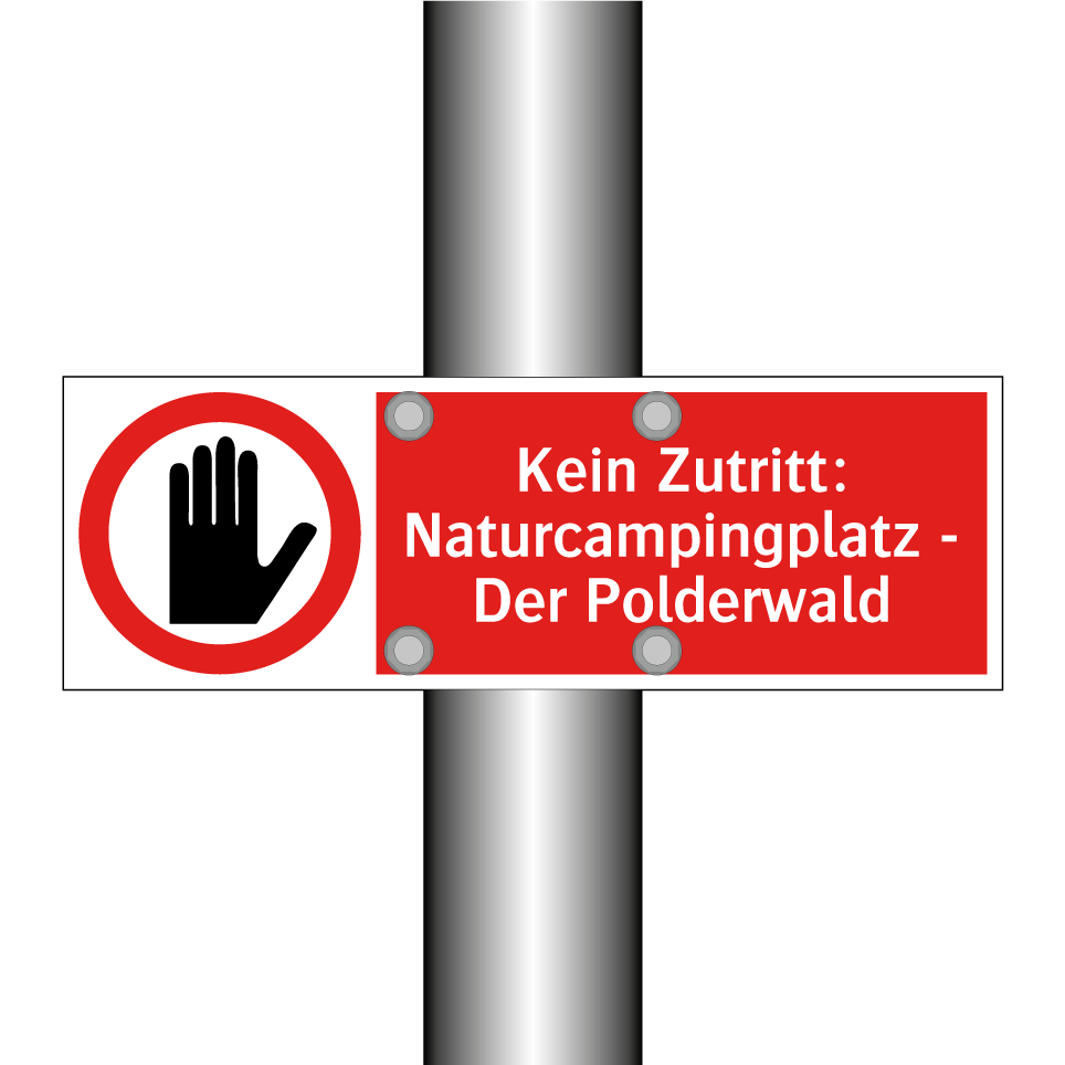 Verbotsschild mit dem Text Kein Zutritt: Naturcampingplatz - Der Polderwald