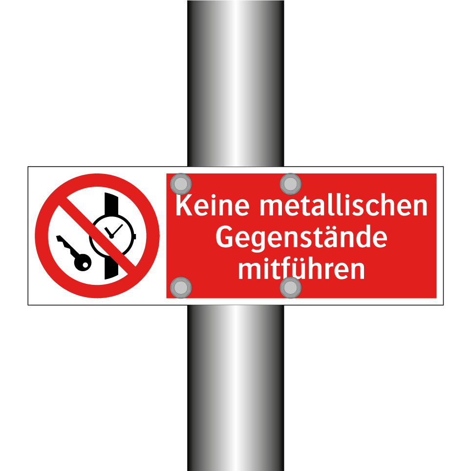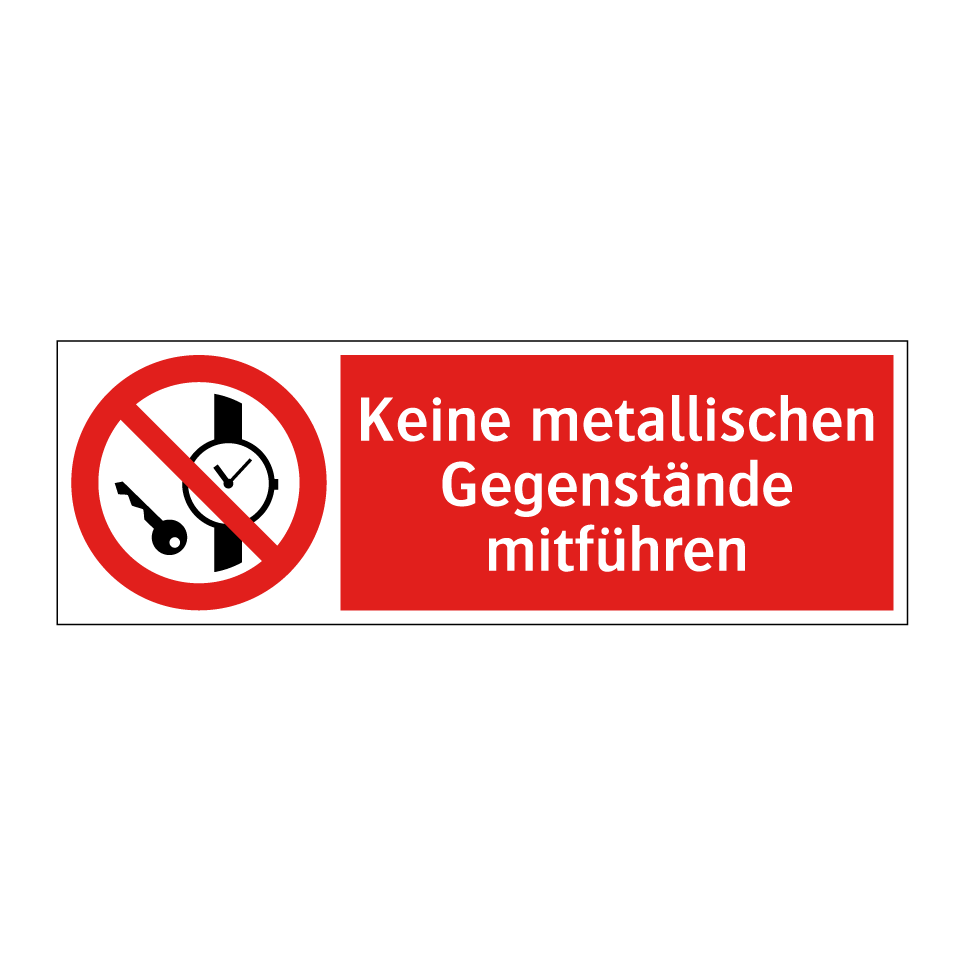 Verbotsschild mit dem Text Keine metallischen Gegenstände mitführen