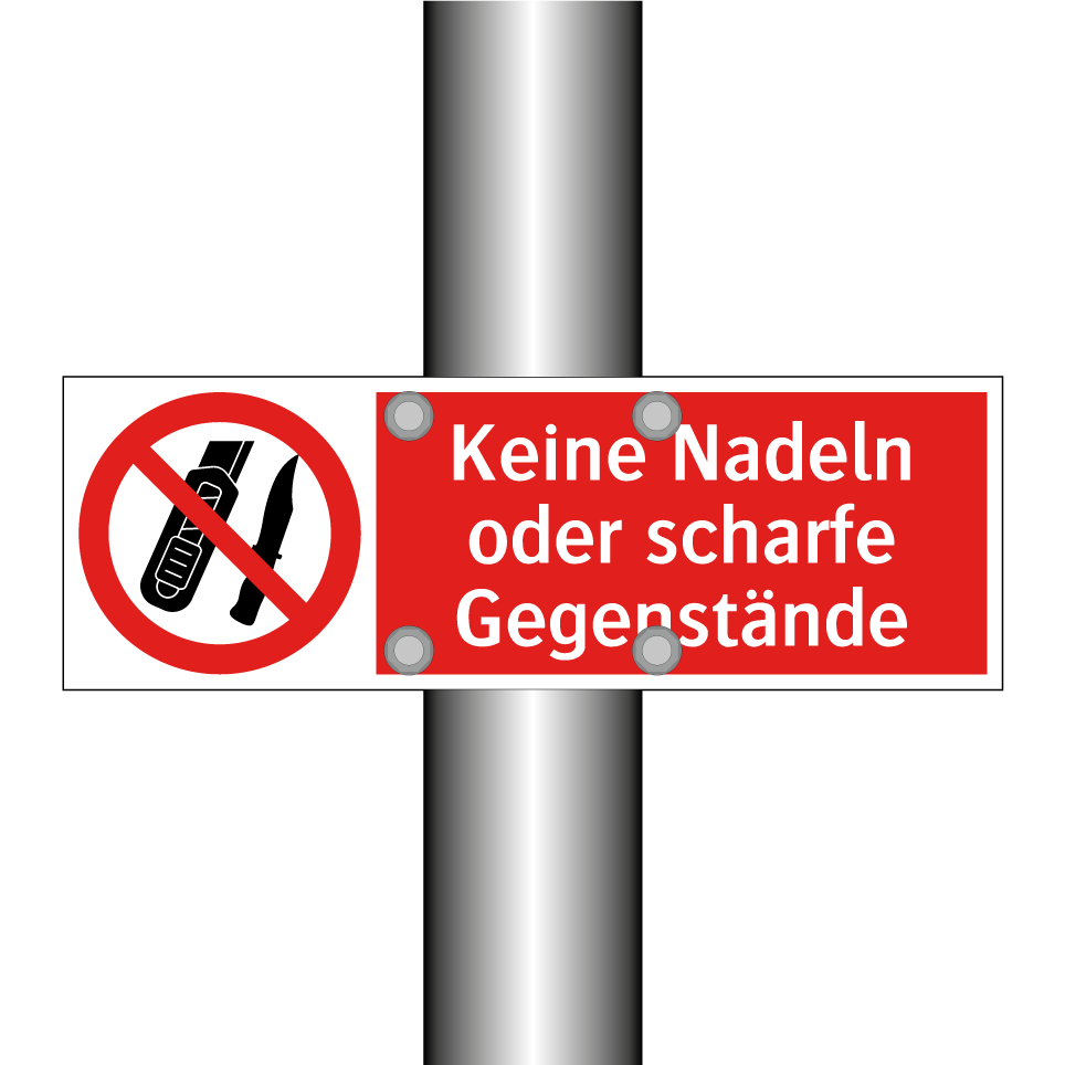 Verbotsschild mit dem Text Keine Nadeln oder scharfe Gegenstände