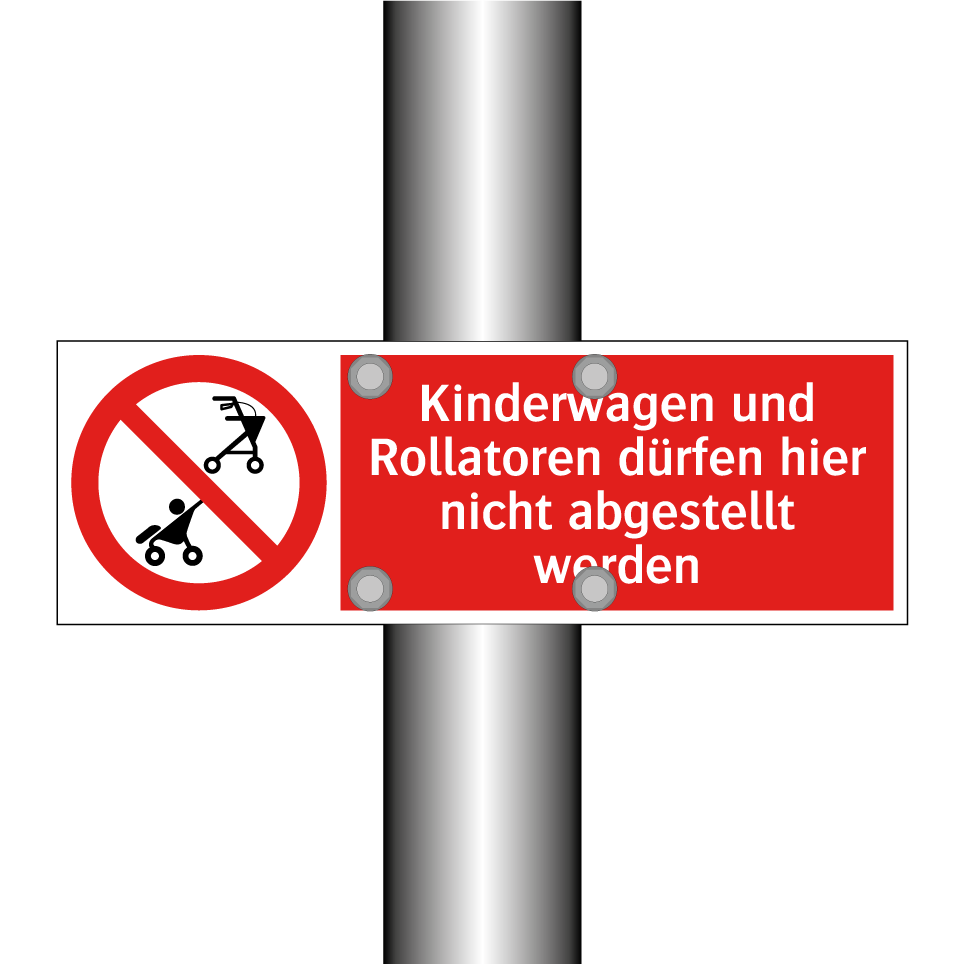 Verbotsschild mit dem Text Kinderwagen und Rollatoren dürfen hier nicht abgestellt werden