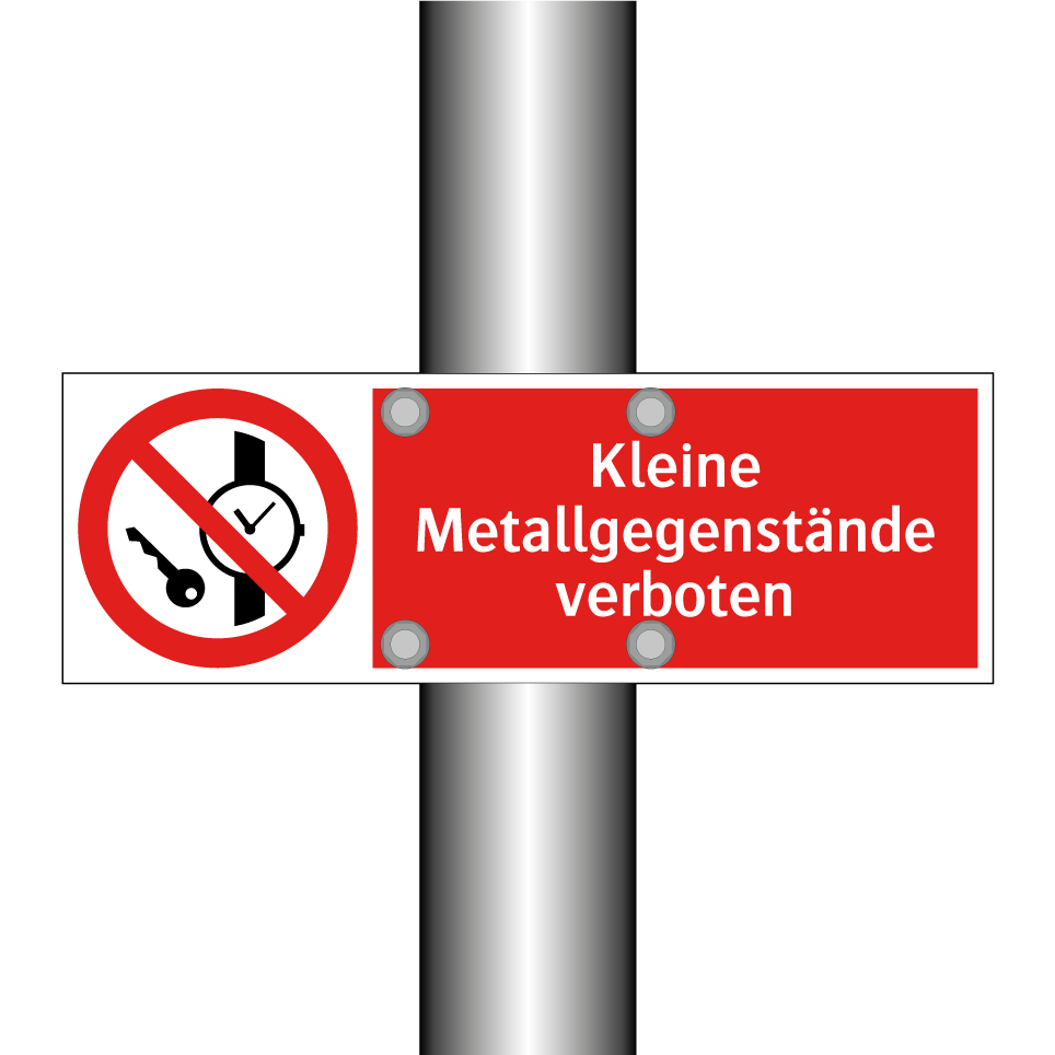 Verbotsschild mit dem Text Kleine Metallgegenstände verboten