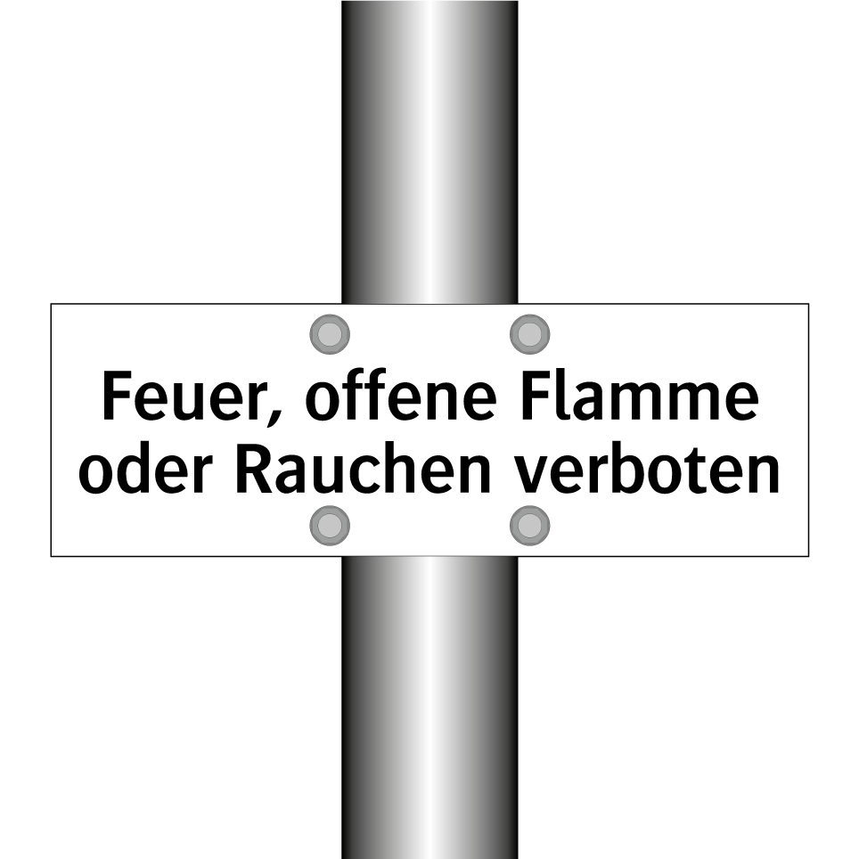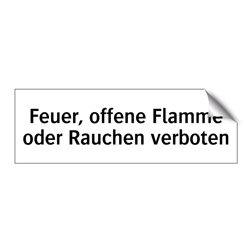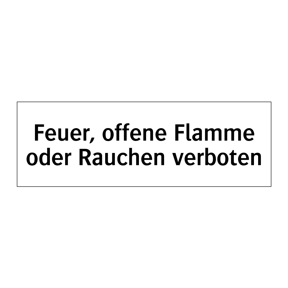 Verbotsschild mit dem Text Feuer, offene Flamme oder Rauchen verboten