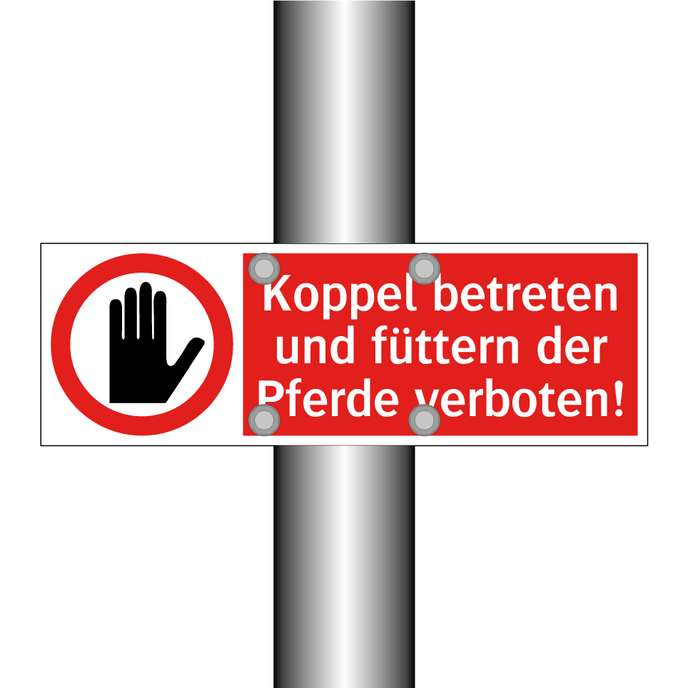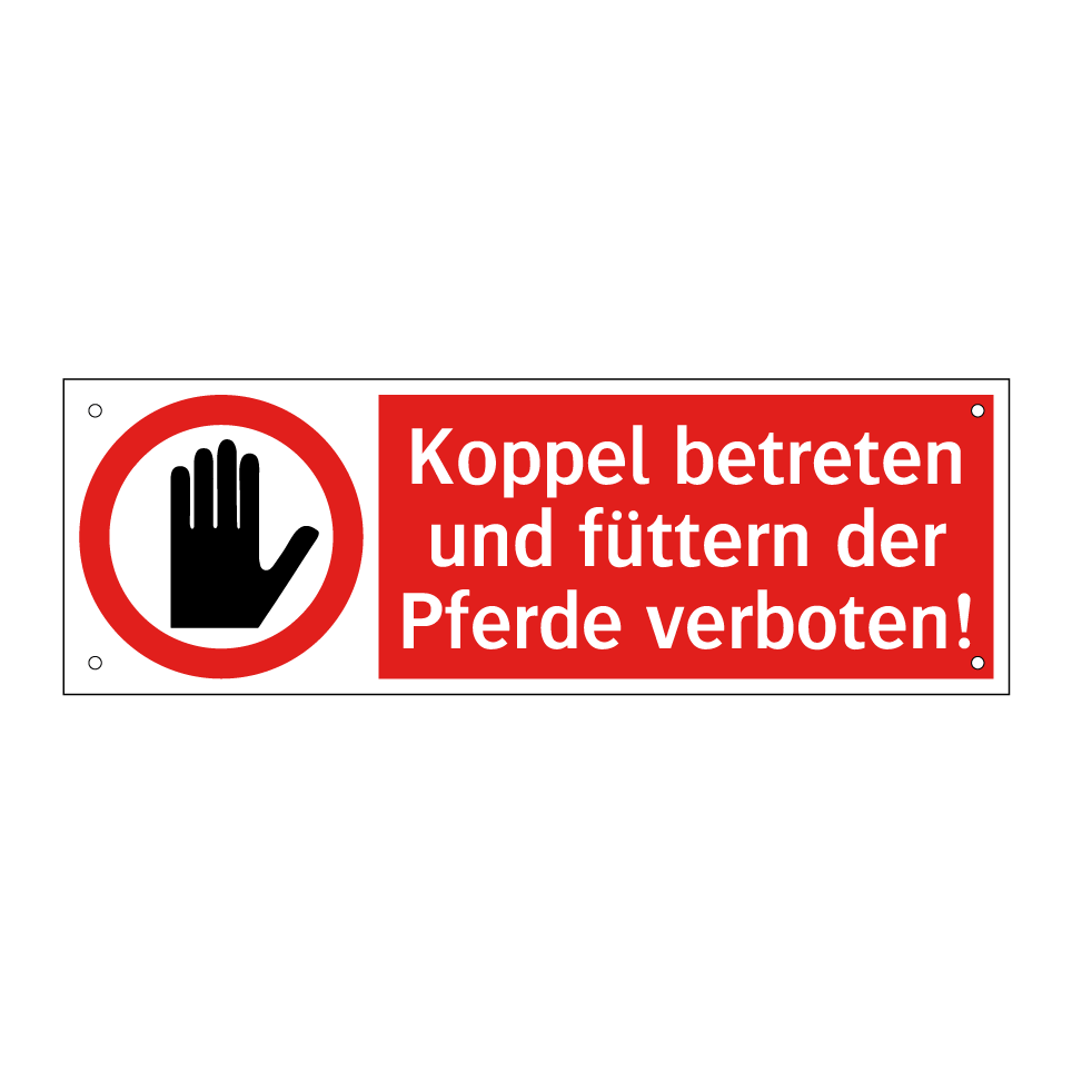Verbotsschild mit dem Text Koppel betreten und füttern der Pferde verboten!