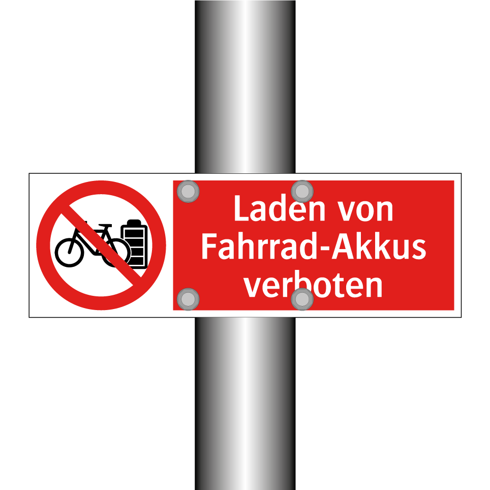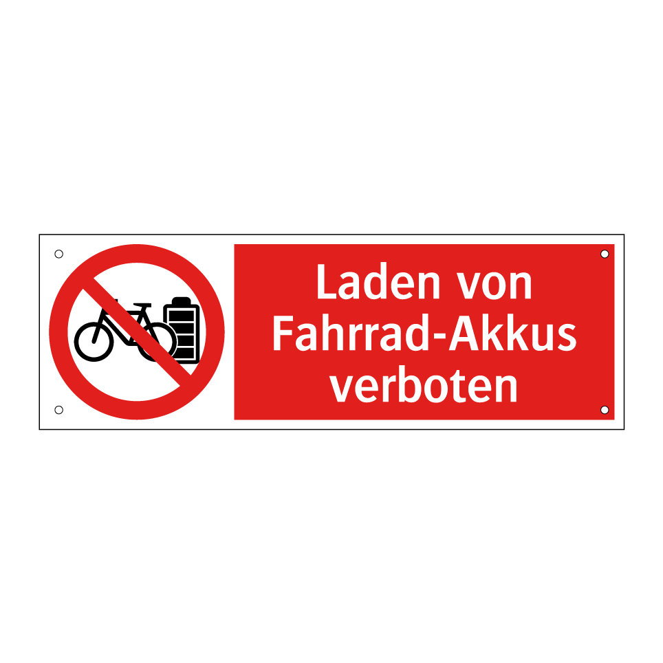 Verbotsschild mit dem Text Laden von Fahrrad-Akkus verboten
