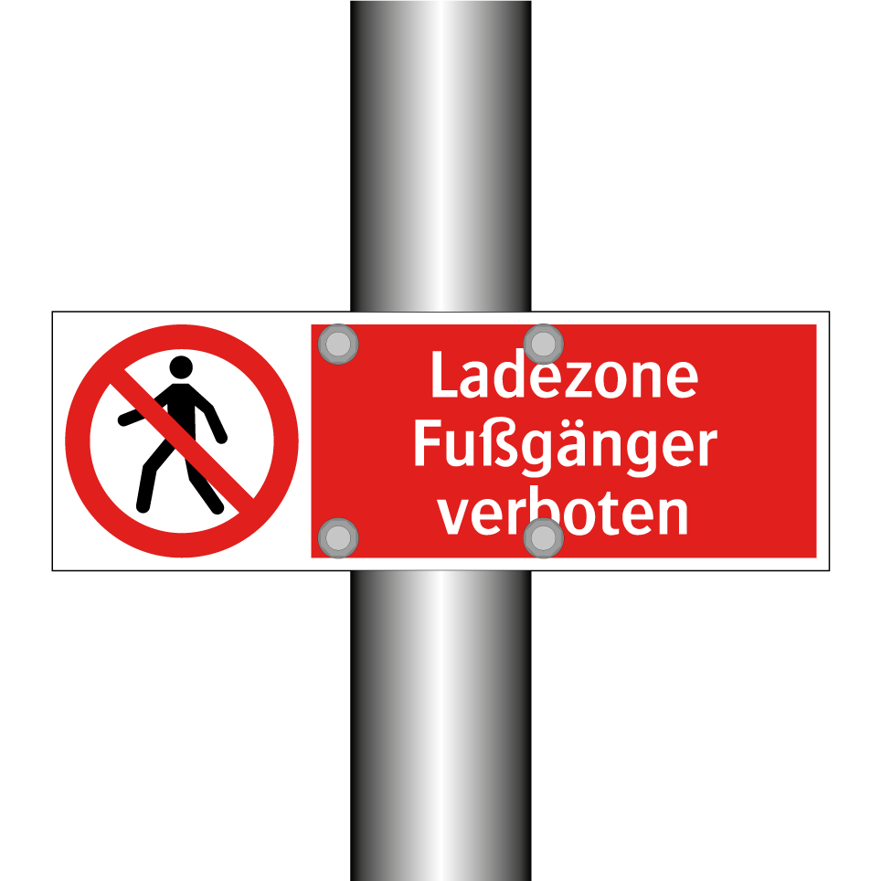 Verbotsschild mit dem Text Ladezone Fußgänger verboten