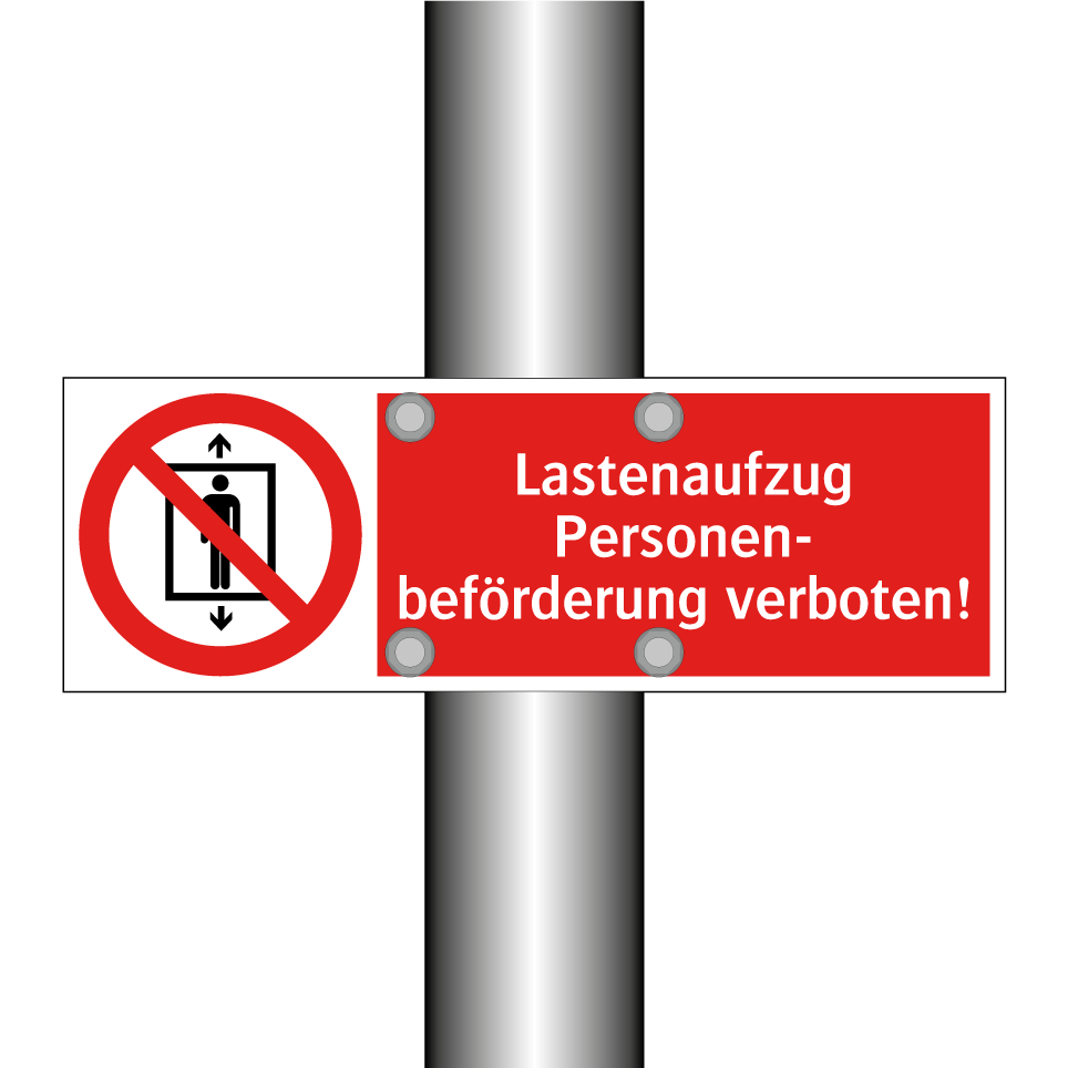 Verbotsschild mit dem Text Lastenaufzug Personen- beförderung verboten!