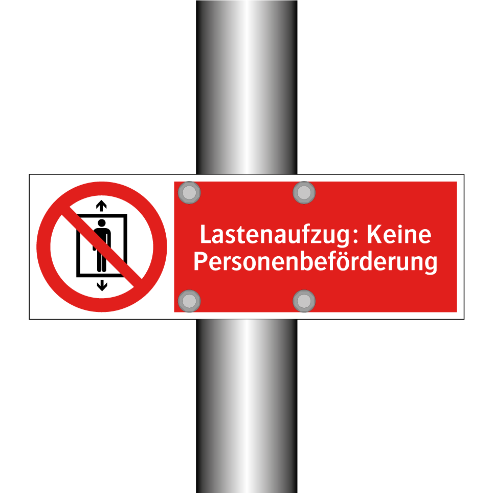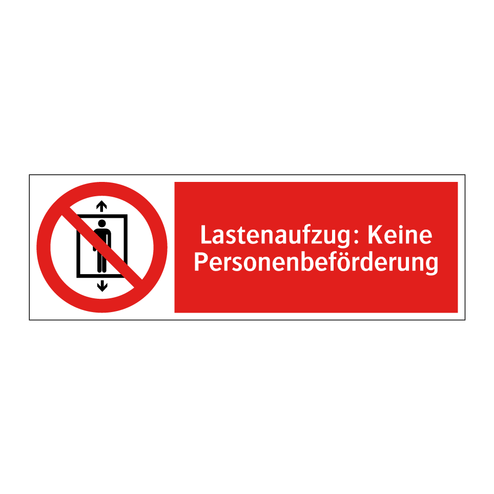 Verbotsschild mit dem Text Lastenaufzug: Keine Personenbeförderung