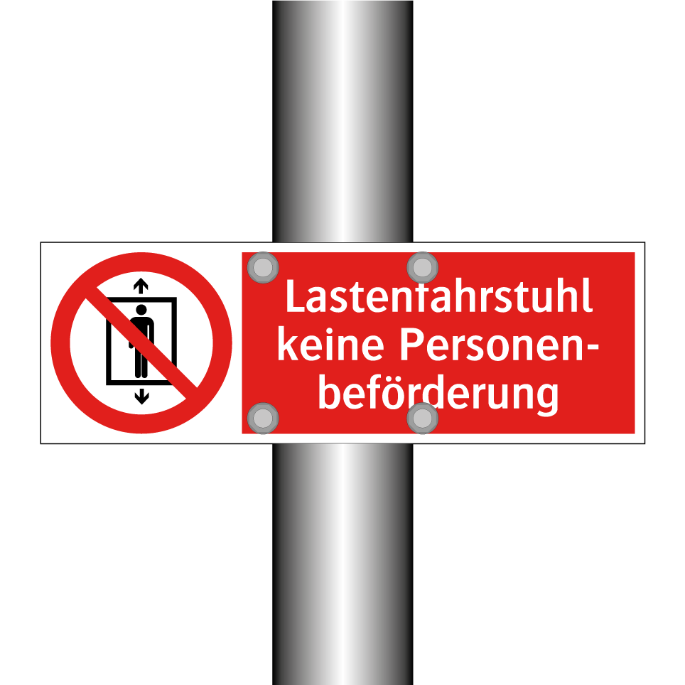 Verbotsschild mit dem Text Lastenfahrstuhl keine Personen- beförderung