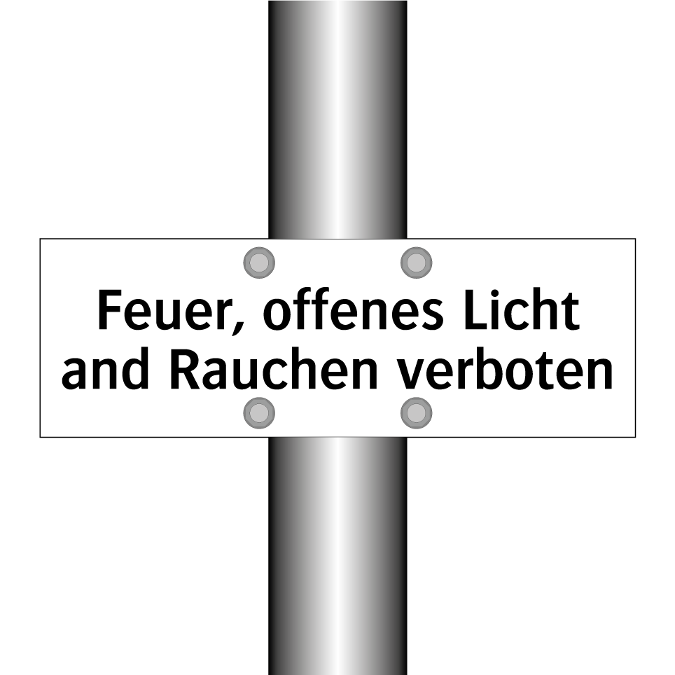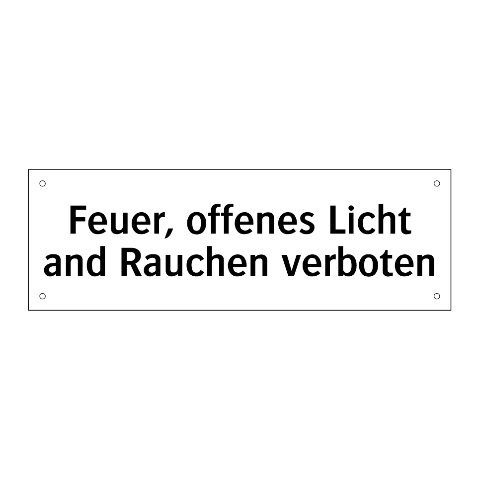 Verbotsschild mit dem Text Feuer, offenes Licht and Rauchen verboten
