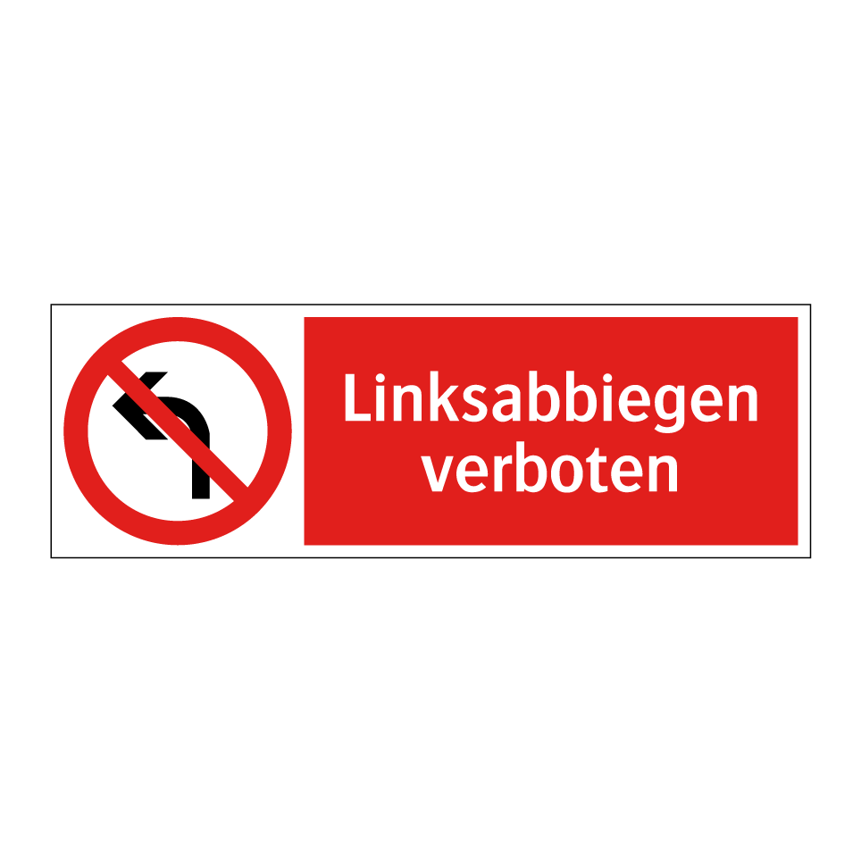 Verbotsschild mit dem Text Linksabbiegen verboten