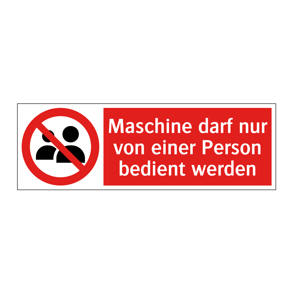 Verbotsschild mit dem Text Maschine darf nur von einer Person bedient werden
