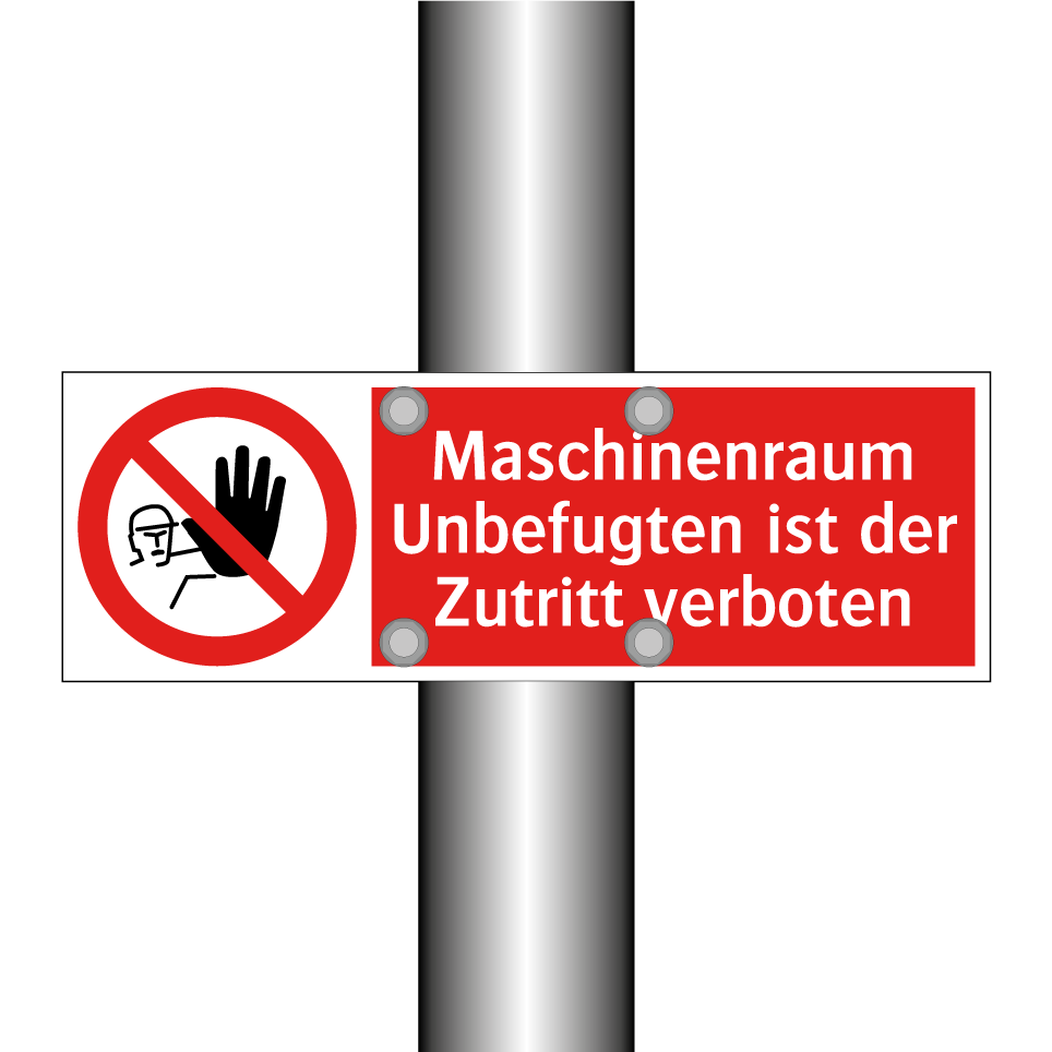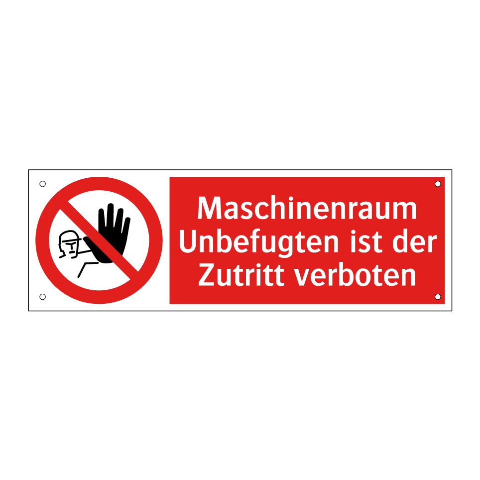 Verbotsschild mit dem Text Maschinenraum Unbefugten ist der Zutritt verboten