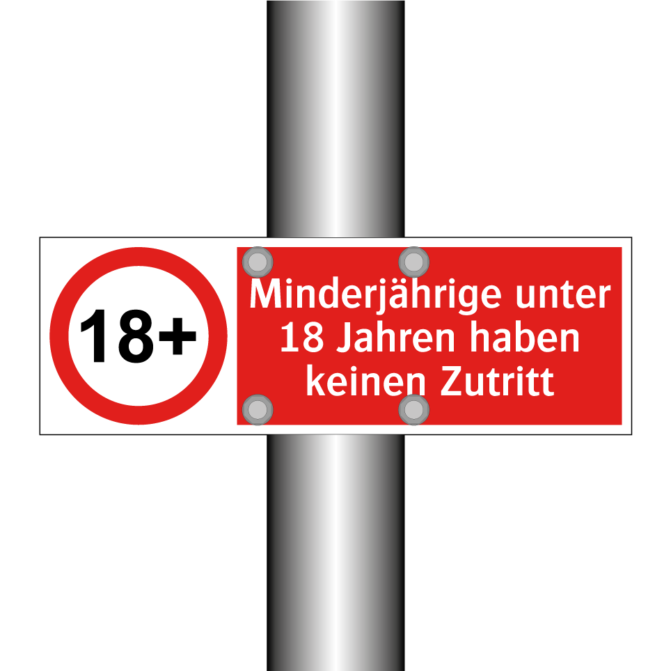 Verbotsschild mit dem Text Minderjährige unter 18 Jahren haben keinen Zutritt