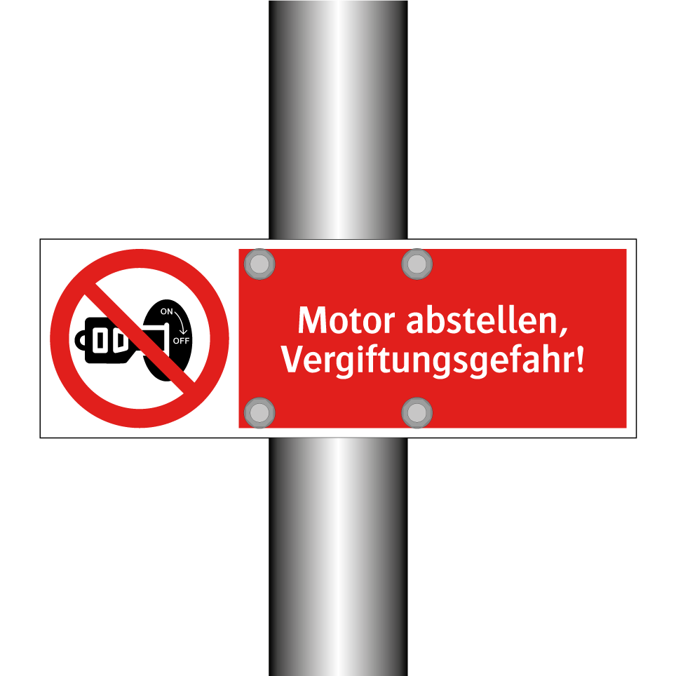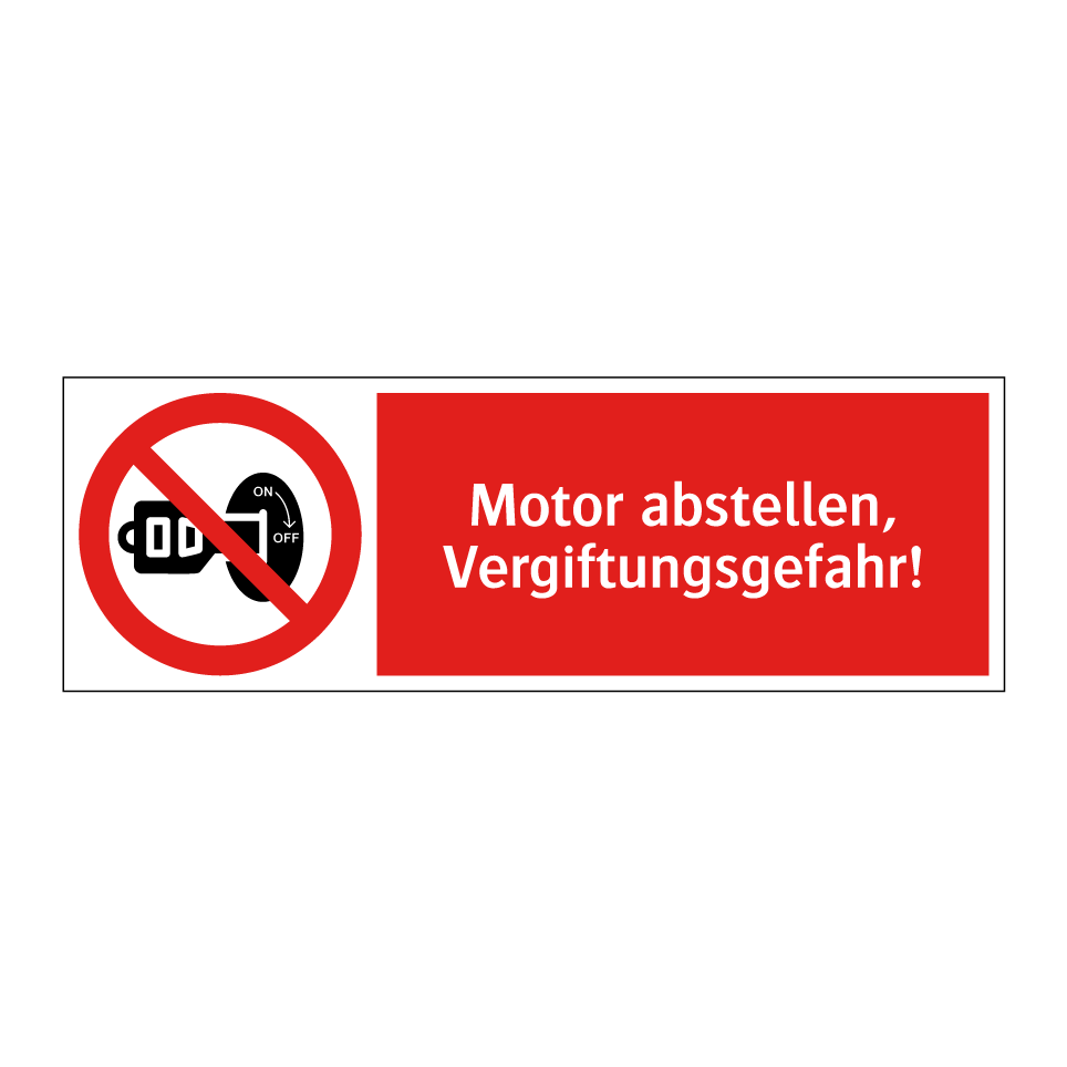 Verbotsschild mit dem Text Motor abstellen, Vergiftungsgefahr!
