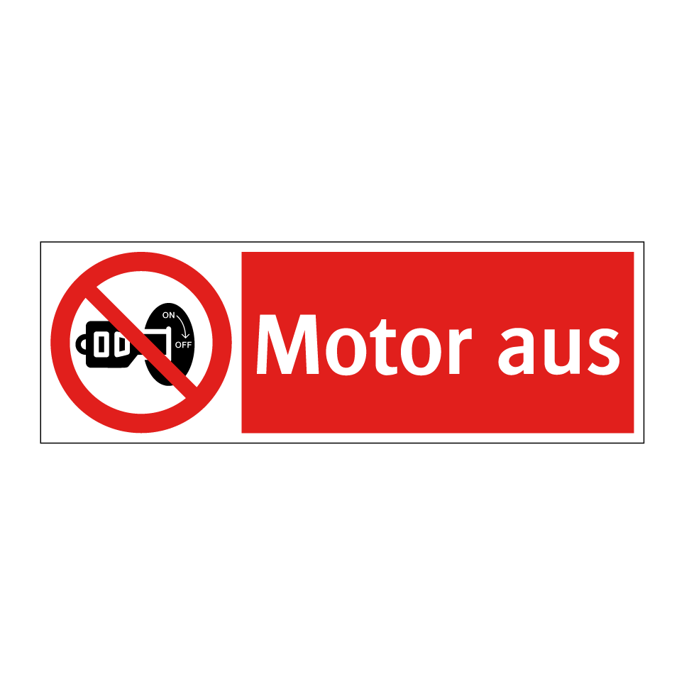 Verbotsschild mit dem Text Motor aus