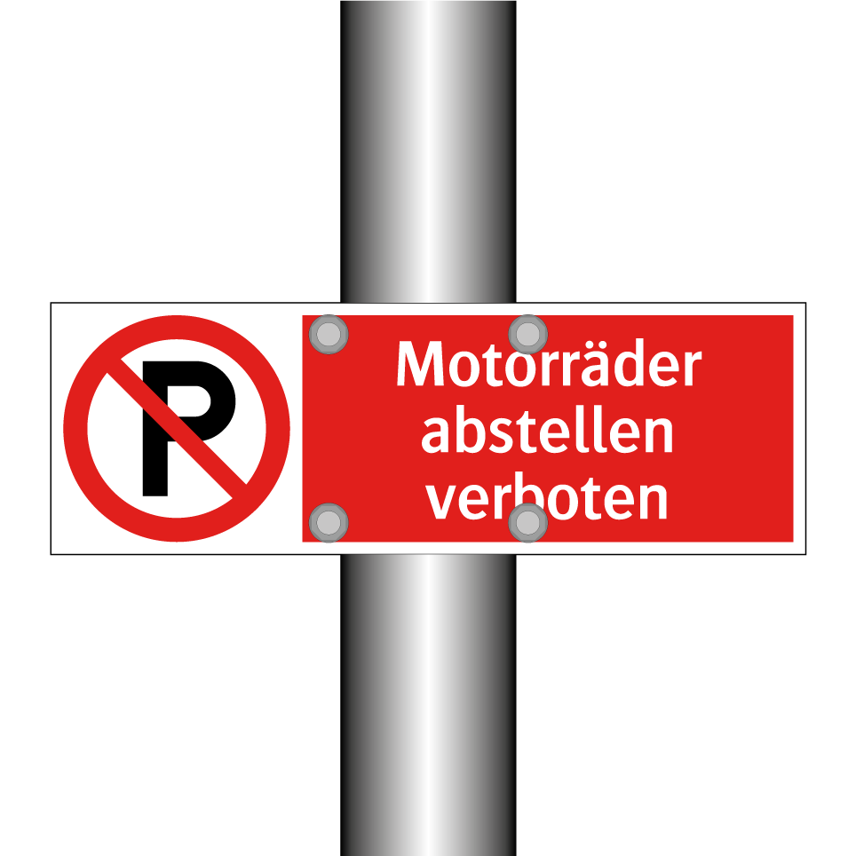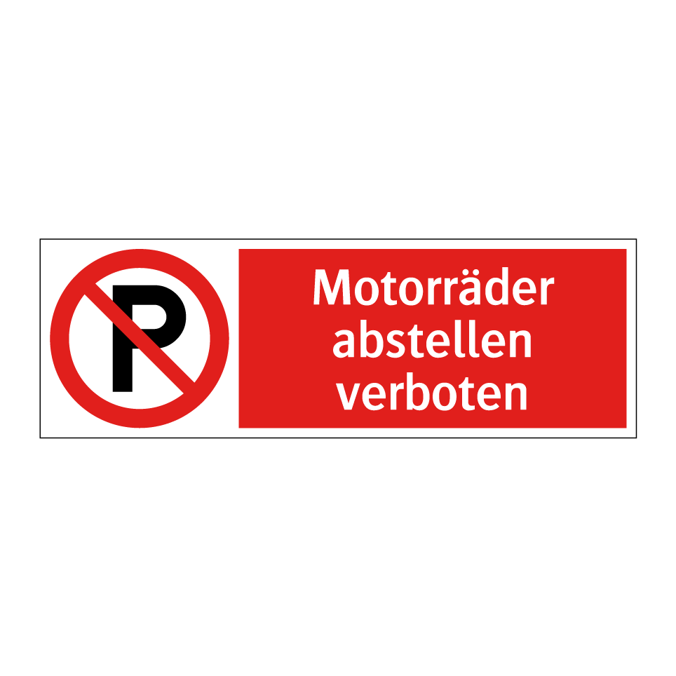Verbotsschild mit dem Text Motorräder abstellen verboten