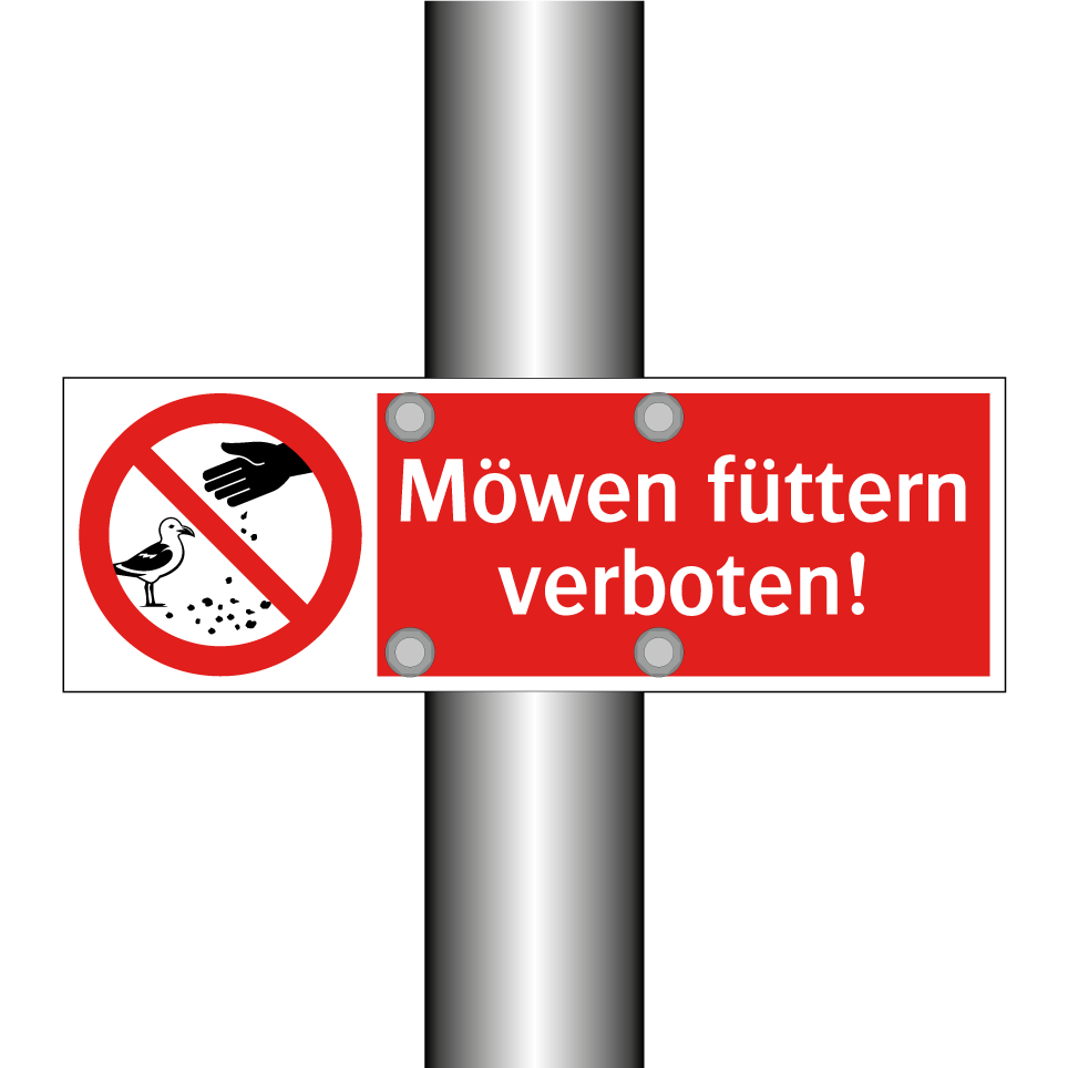 Verbotsschild mit dem Text Möwen füttern verboten!