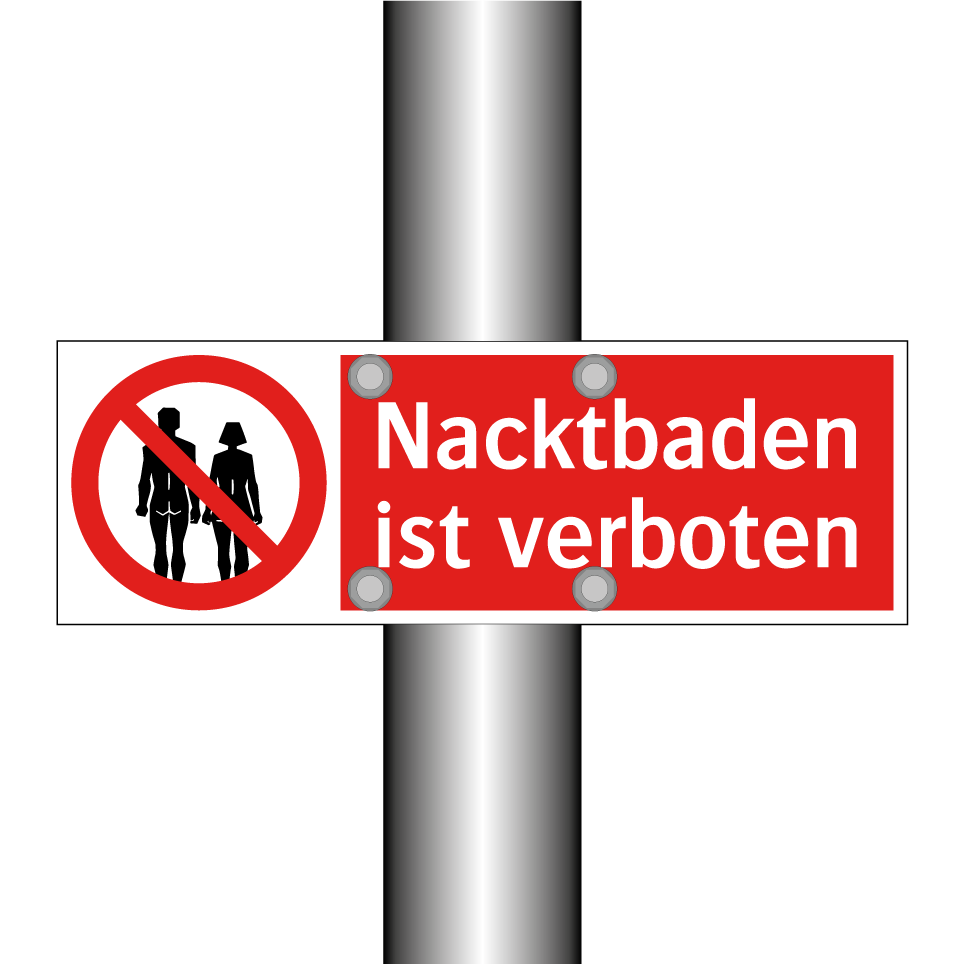Verbotsschild mit dem Text Nacktbaden ist verboten