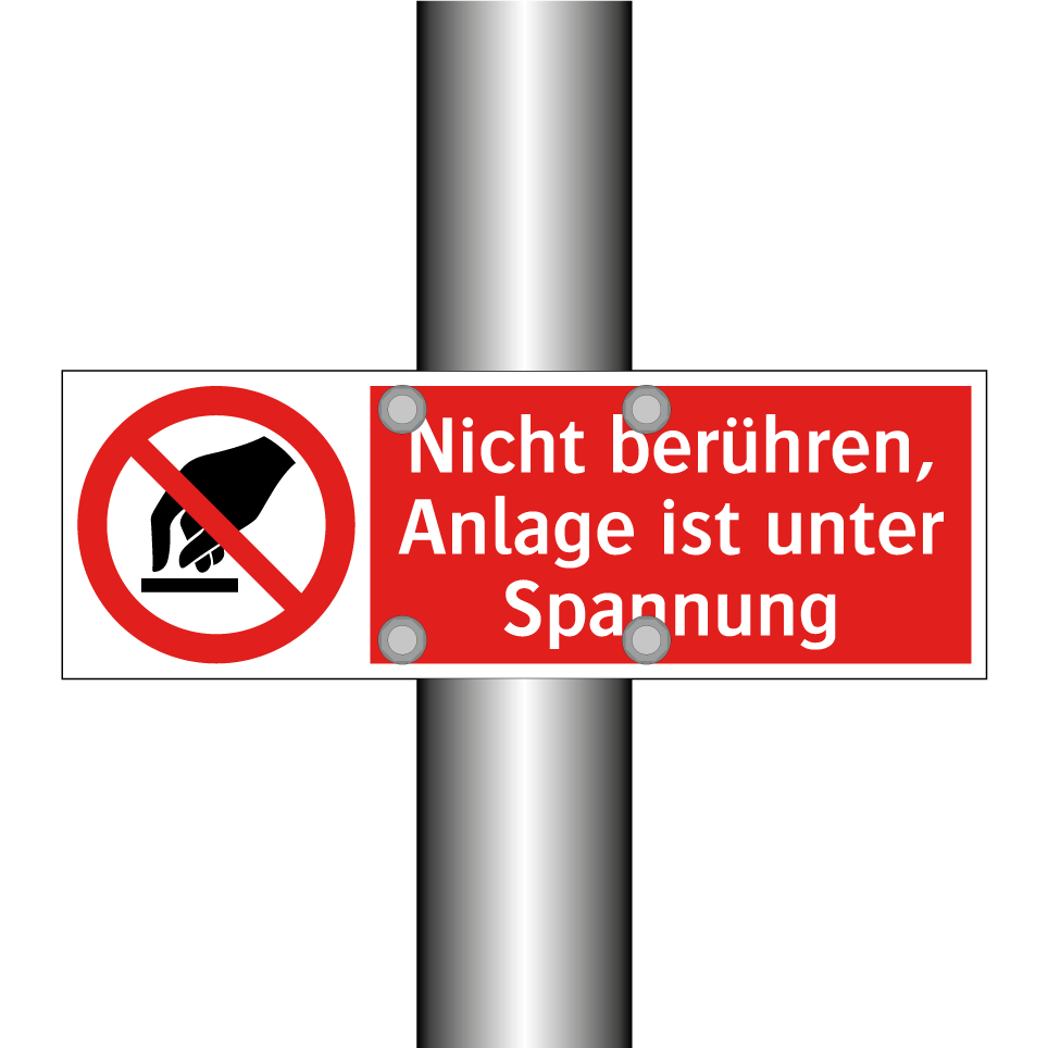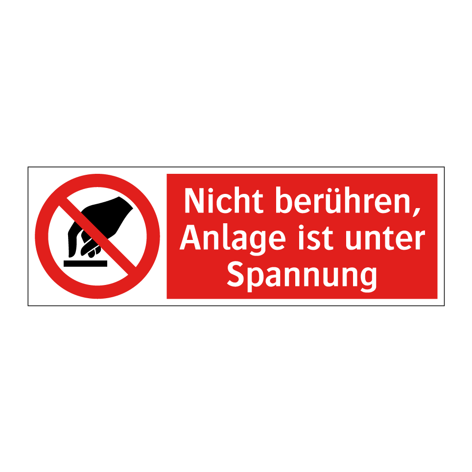 Verbotsschild mit dem Text Nicht berühren, Anlage ist unter Spannung