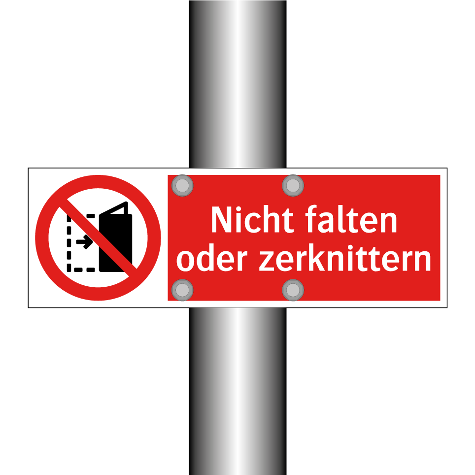 Verbotsschild mit dem Text Nicht falten oder zerknittern