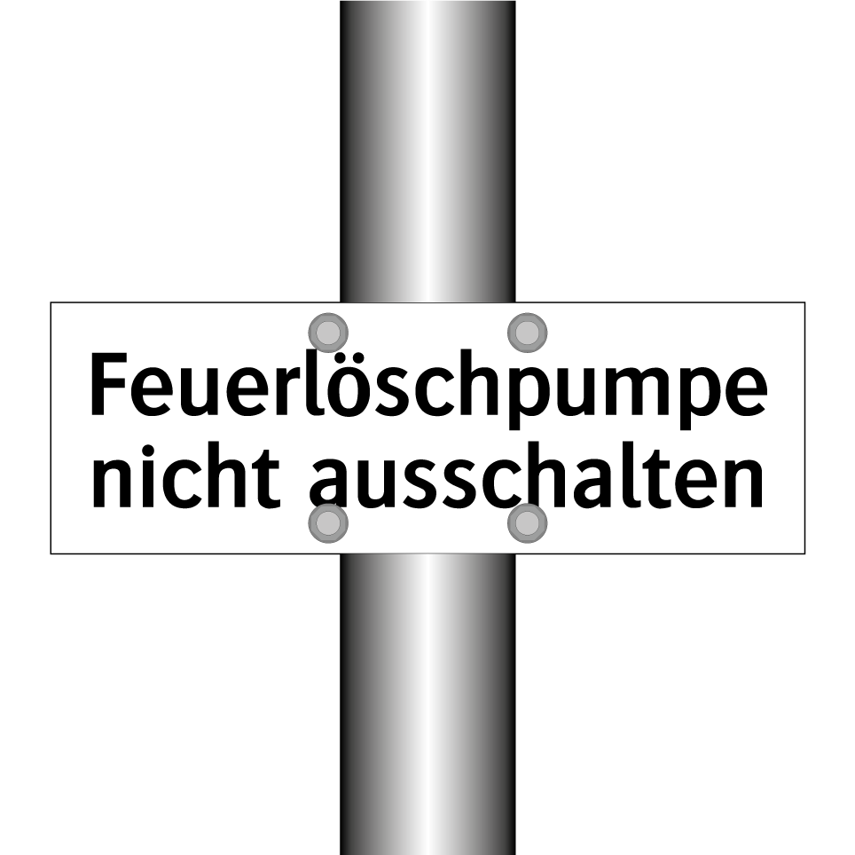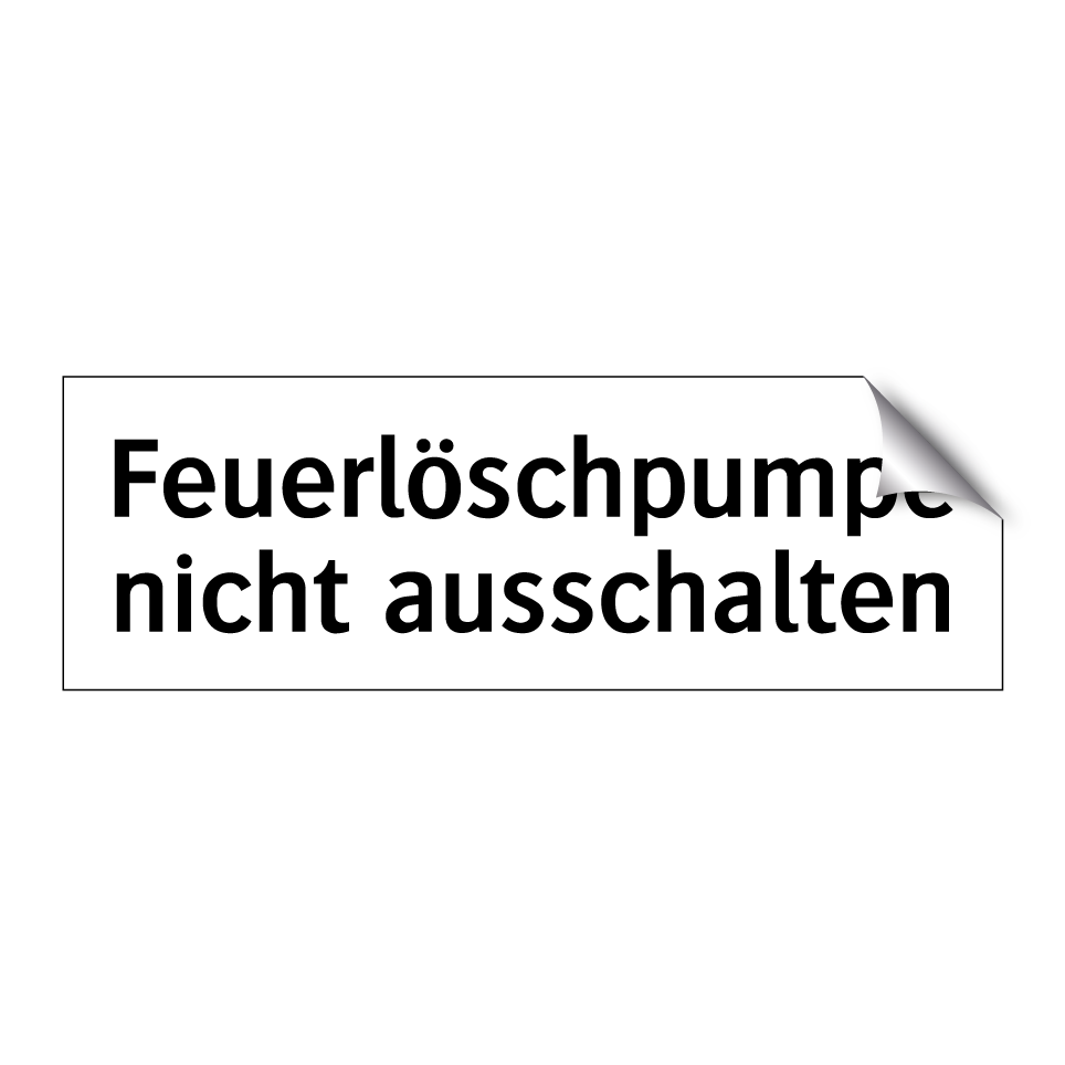 Verbotsschild mit dem Text Feuerlöschpumpe nicht ausschalten