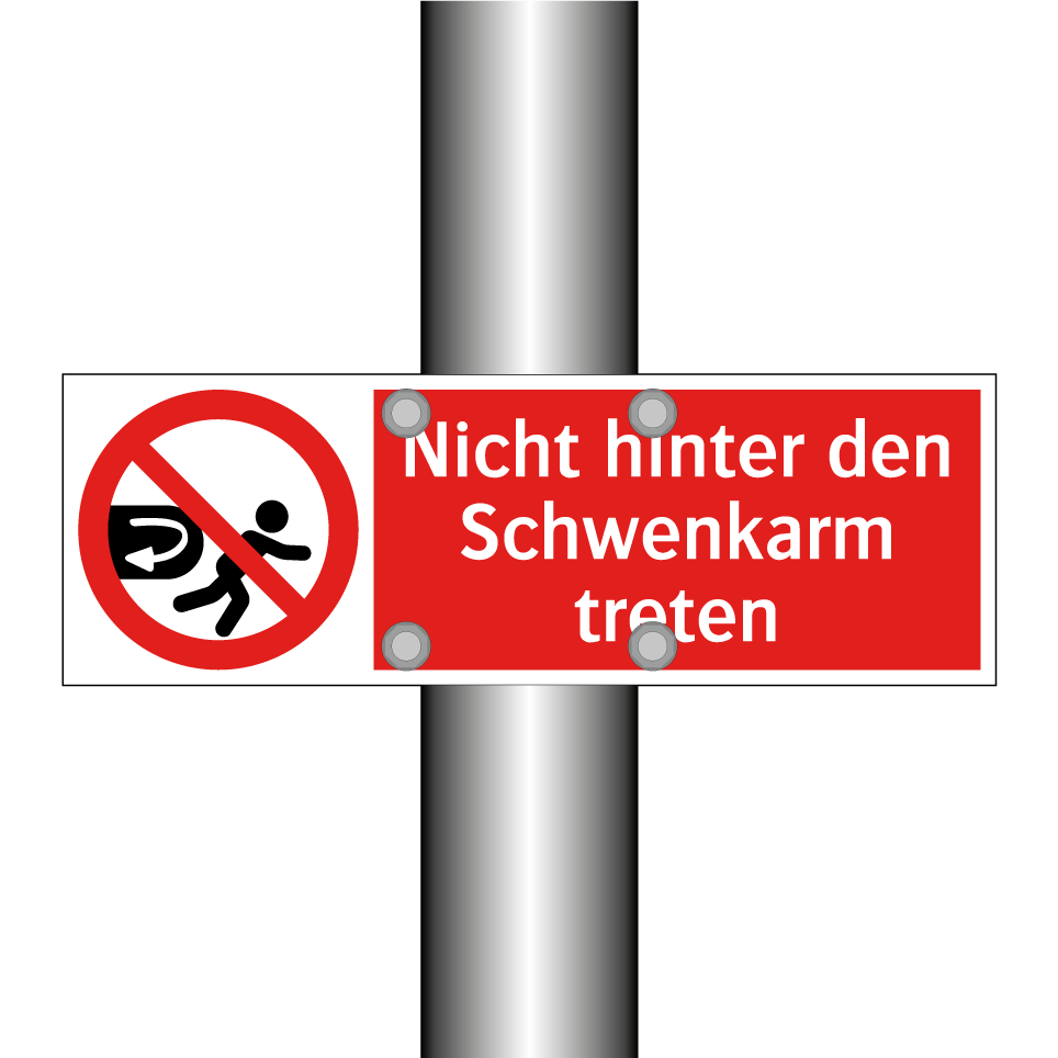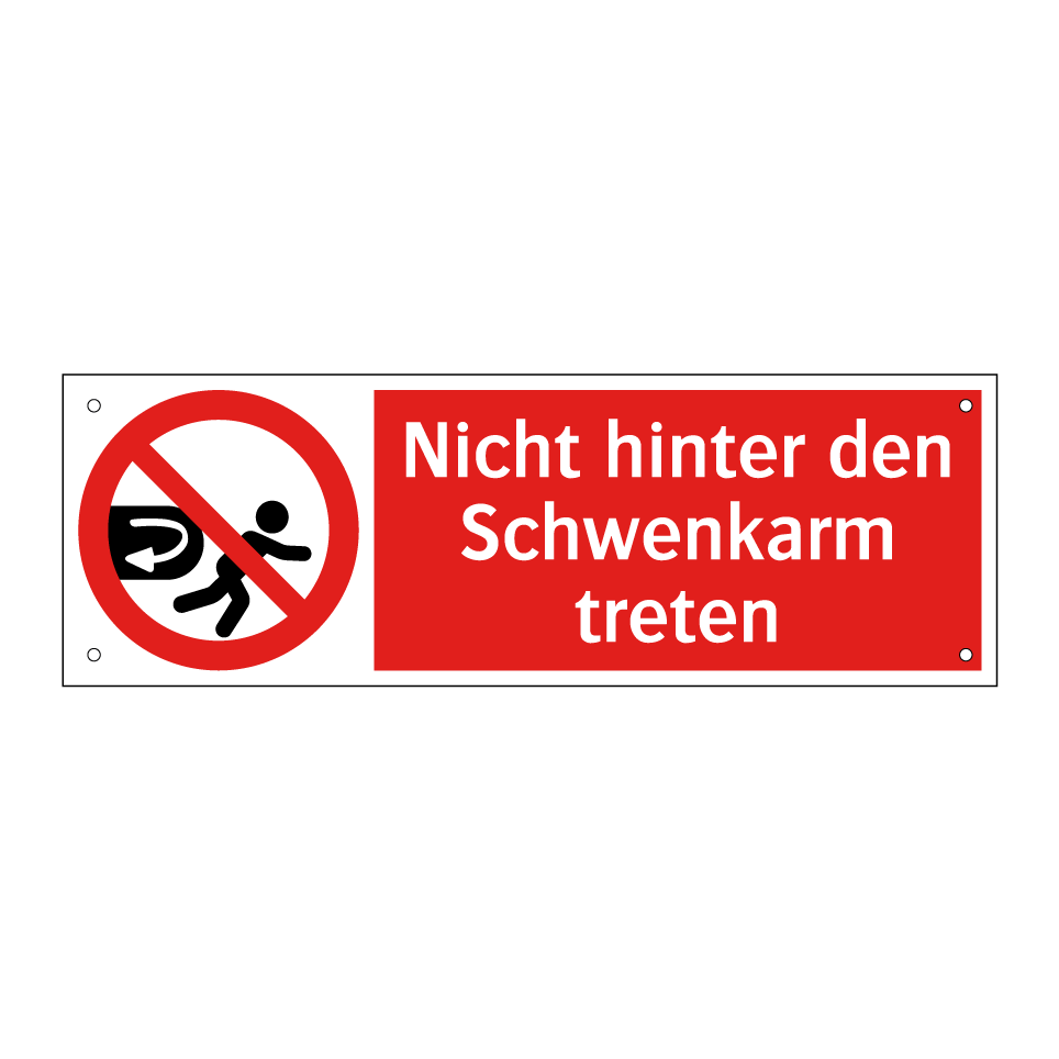 Verbotsschild mit dem Text Nicht hinter den Schwenkarm treten