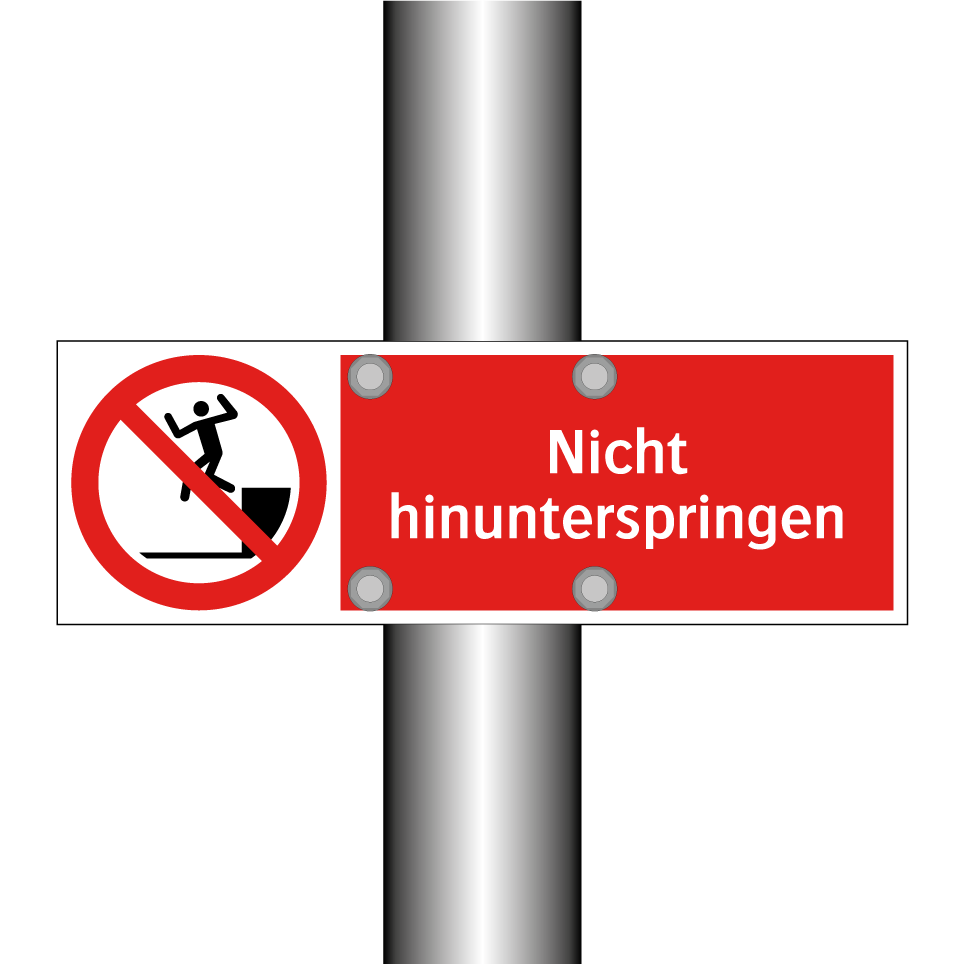 Verbotsschild mit dem Text Nicht hinunterspringen