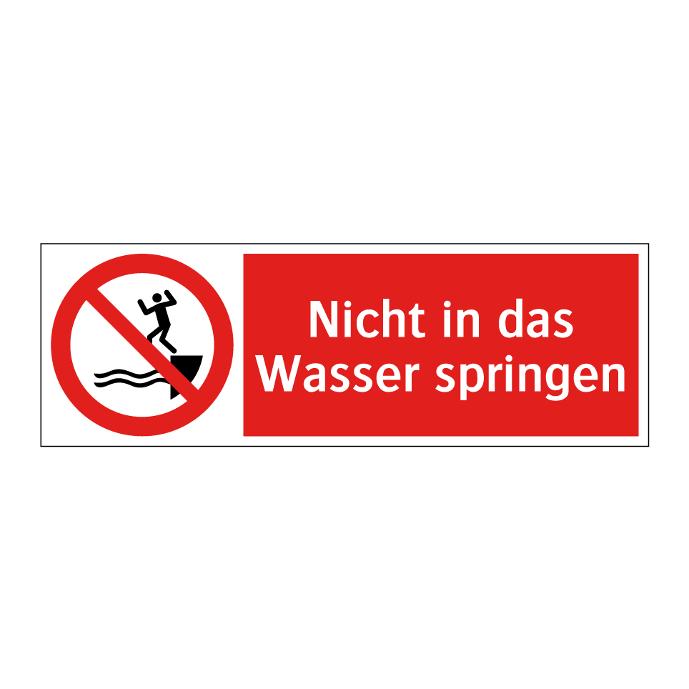 Diese auffällige Verbotsschild mit rotem Hintergrund und weißer Schrift ist ideal, um auf Gefahren in der Nähe von Wasser hinzuweisen. Es dient dazu, Menschen davor zu warnen, nicht ins Wasser zu springen, und kann an verschiedenen Orten wie Schwimmbädern, Seen oder Flussufern angebracht werden. Die klare Symbolik und die prägnante Botschaft machen es einfach, die Bedeutung auf einen Blick zu erfassen. Diese Verbotsschilder sind besonders nützlich in Bereichen, in denen die Sicherheit der Besucher oberste Priorität hat. Platzieren Sie es an gut sichtbaren Stellen, um Unfälle zu vermeiden und die Sicherheit zu gewährleisten.